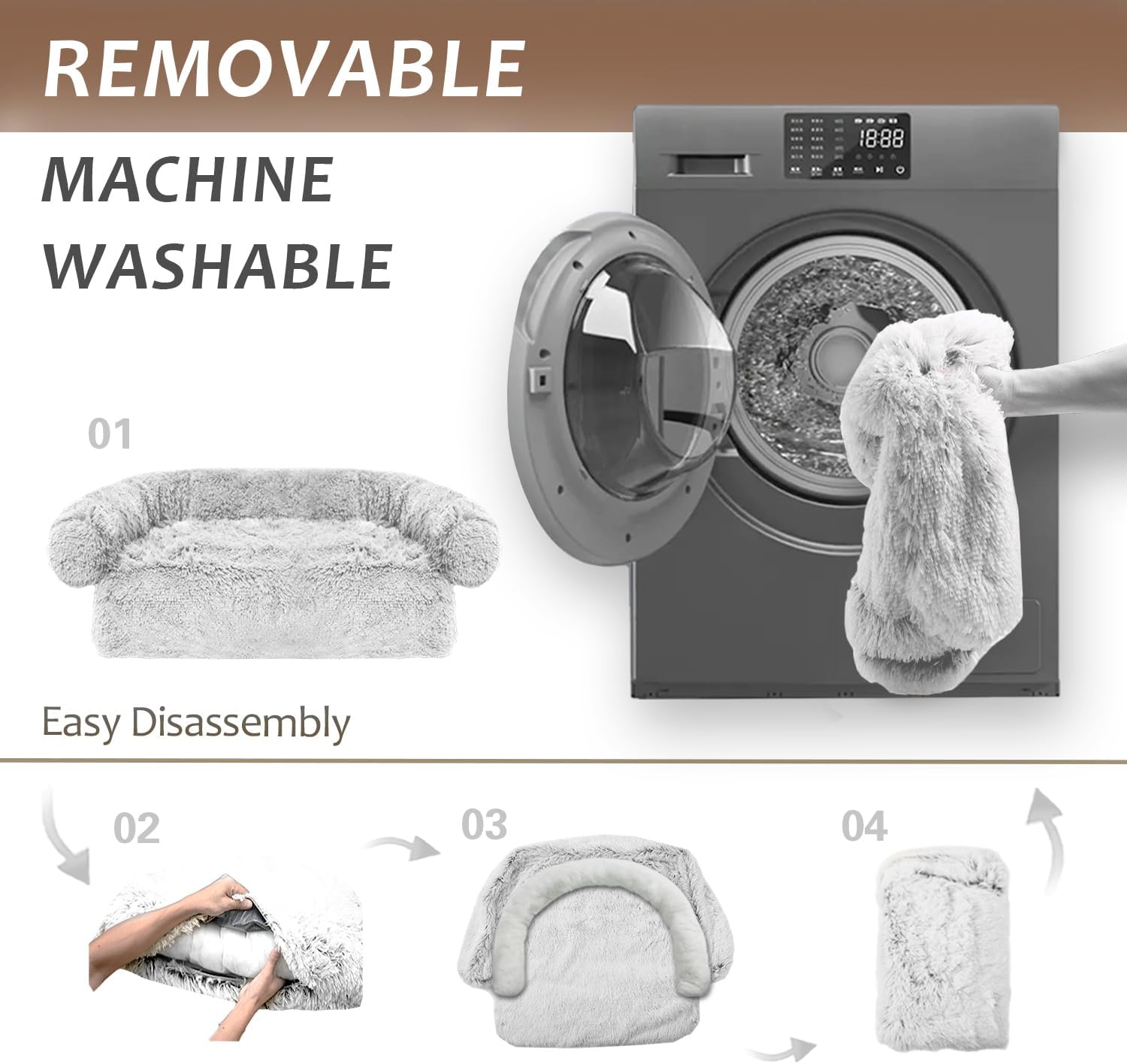 Calming Dogs/Cats Bed Mats, Dog Pad Washable Removable Couch Cover, Plush Long Fur Mat for Pets, Waterproof Lining, Perfect for Small, Medium and Large Dogs and Cats (Light Gray, 31"x23")