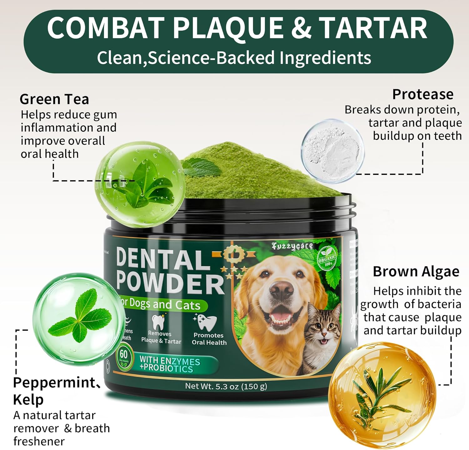- After-sales service : We want to make sure you are completely satisfied with Pet Dental Powder and that your needs are met. 👉️Any product issues, please contact us via Amazon Message Center. Enjoy a FULL-REFUND, NO QUESTIONS ASKED!