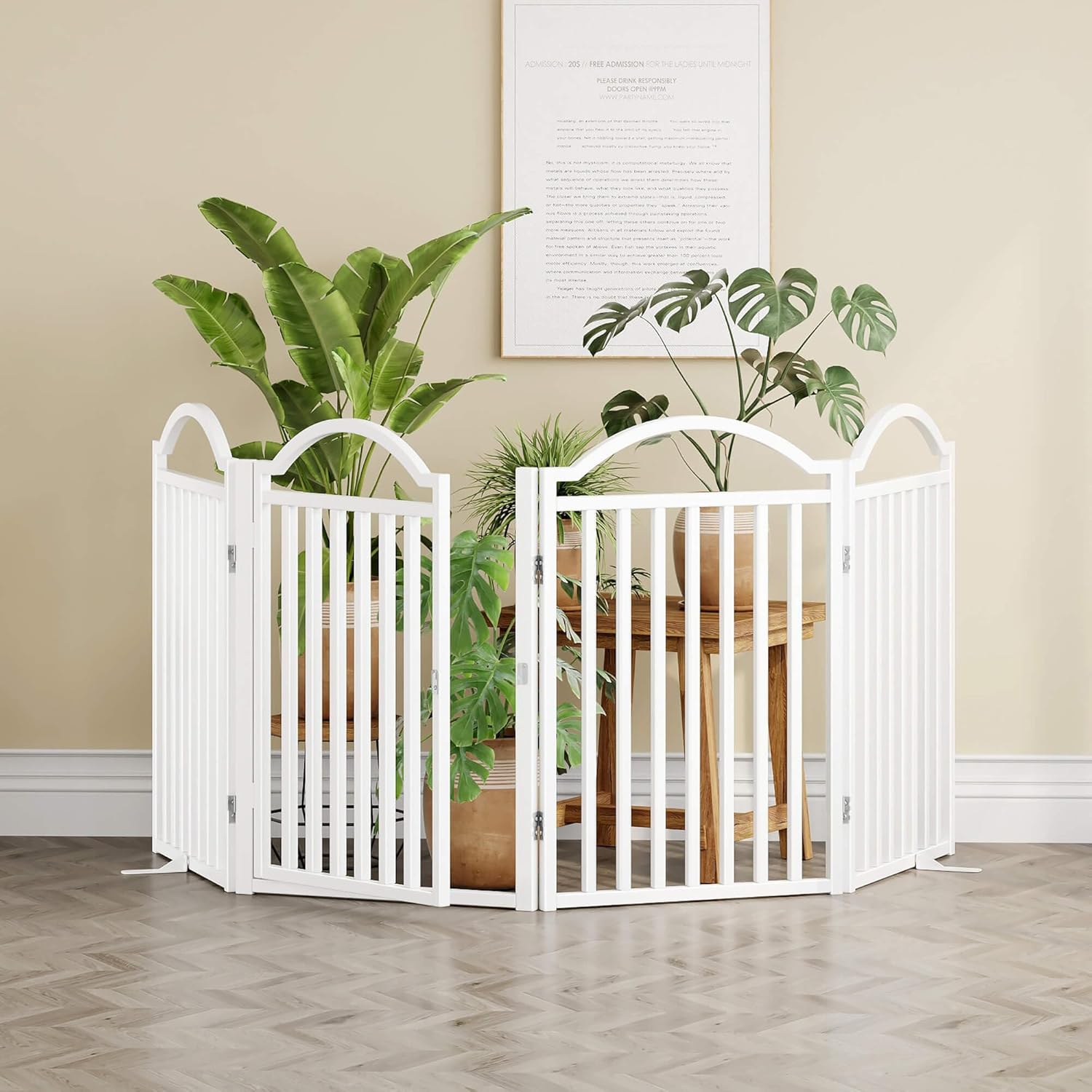 - FREESTANDING - Unlike traditional pet gates, this pet fence does not require installation that could potentially damage your home. With an accordion design, this tall expandable dog gate is sturdy enough to barricade your small dog, puppy, or cat, without drilling