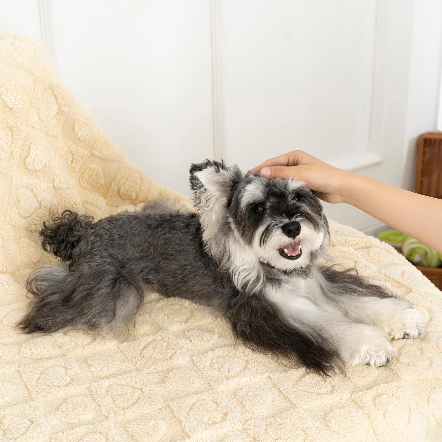 gogobunny Calming Plush Dog Cat Blanket 300GSM Coral Fleece, Ultra-Soft Machine Washable Pet Bedding for Small Medium Dogs Cats Puppies Kittens (Beige, 40x50)