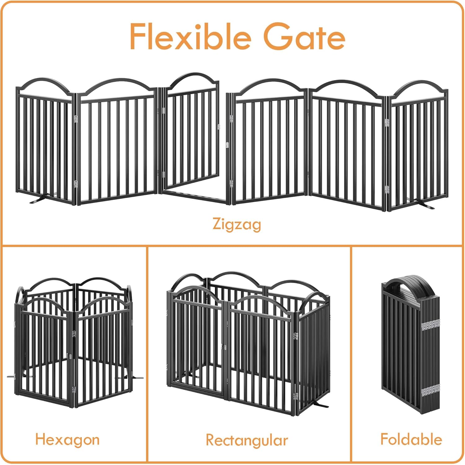 UDD Dog Gate Indoor 144" Extra Wide, 32" Tall Foldable Pet Gate with Door for Stairs Doorways Hallways Porch, Freestanding No Drilling Metal Pet Fence for Dogs Puppy, Black 6-Panel