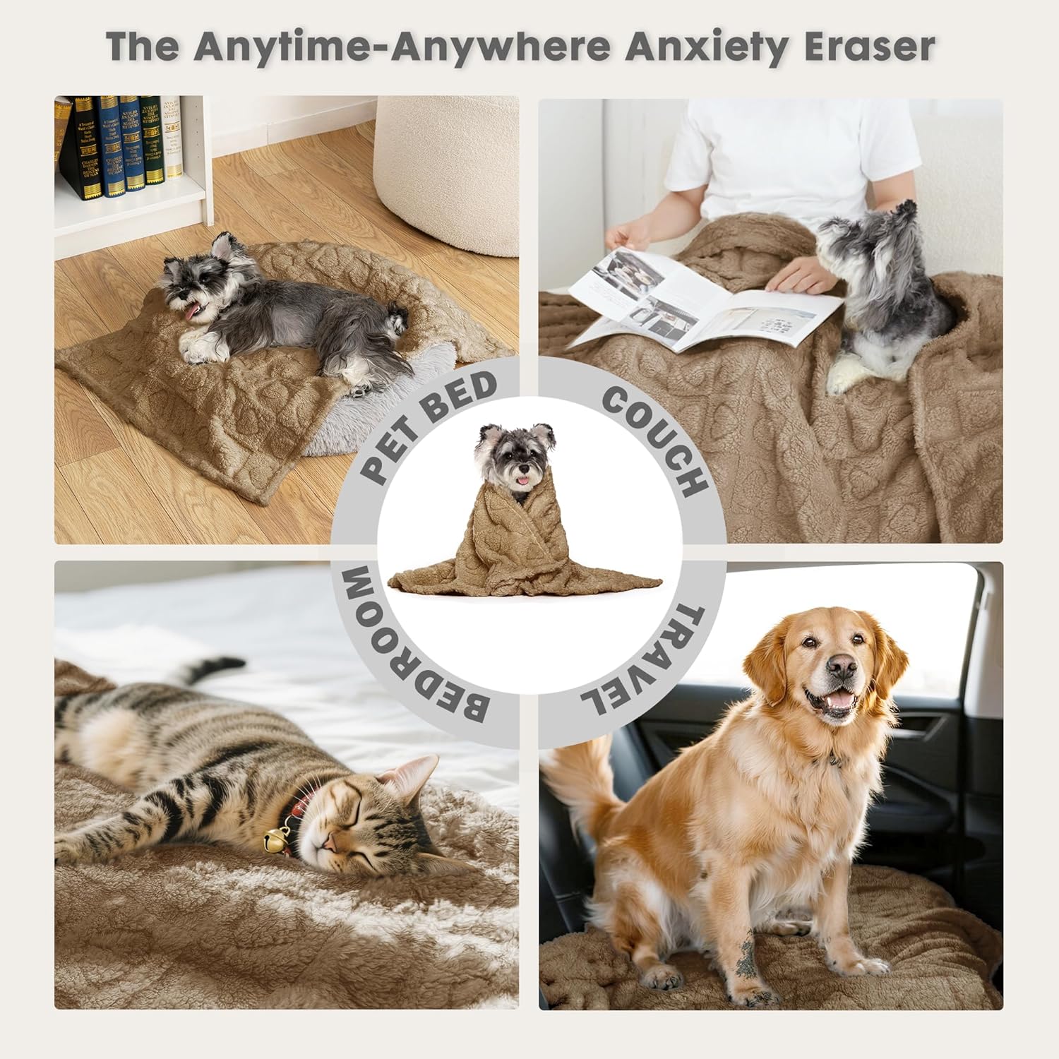 gogobunny Calming Plush Dog Cat Blanket 300GSM Coral Fleece, Ultra-Soft Machine Washable Pet Bedding for Small Medium Dogs Cats Puppies Kittens (Brown, 40x50)
