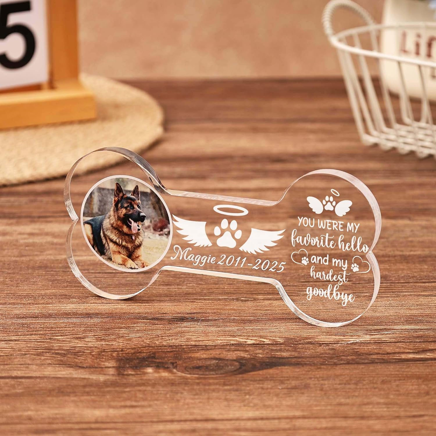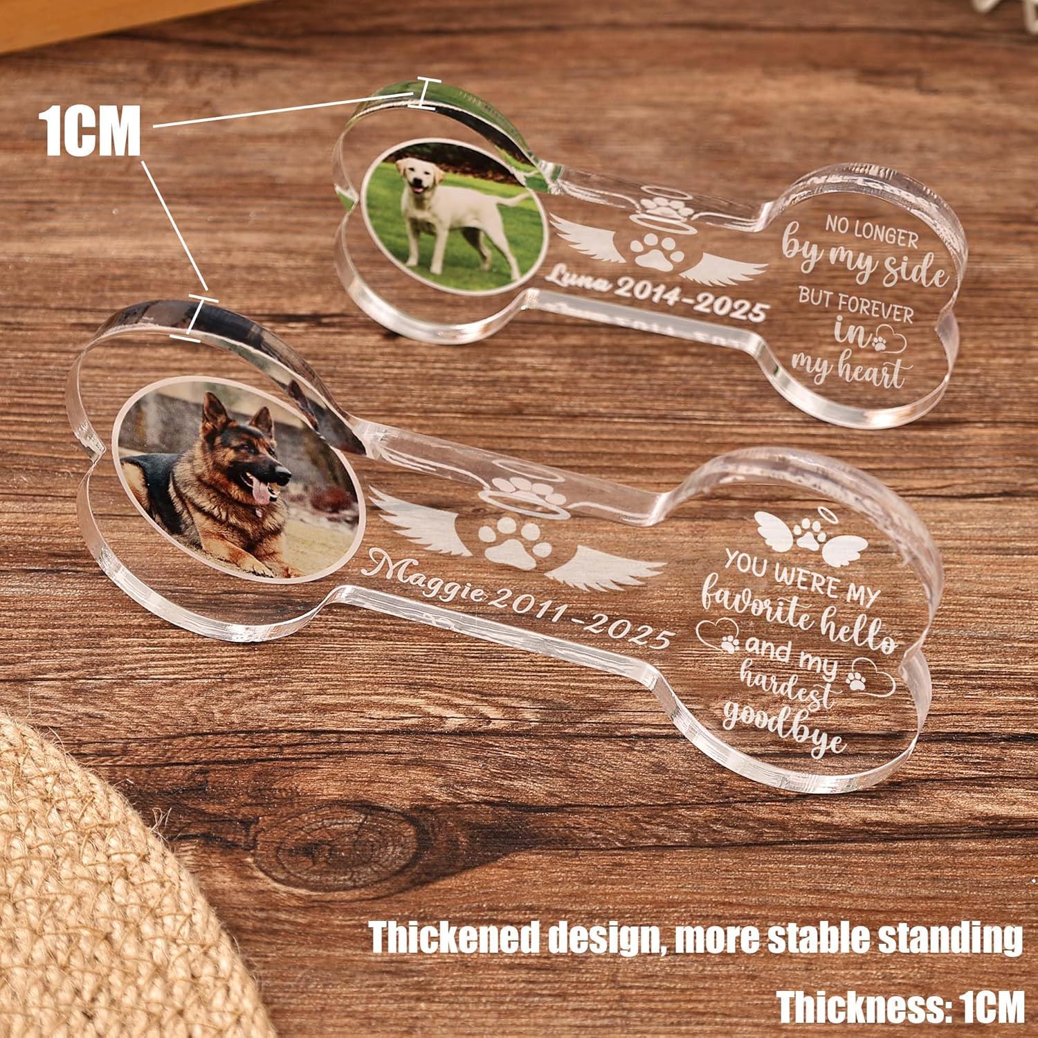 Personalized Photo Pet Memorial Gift, Custom Memorial Gifts for Loss of Dog, Dog Memorial Ornament, Pet Sympathy Gift, Bone Shape Acrylic Keepsake for Dog Puppy. (6.5")