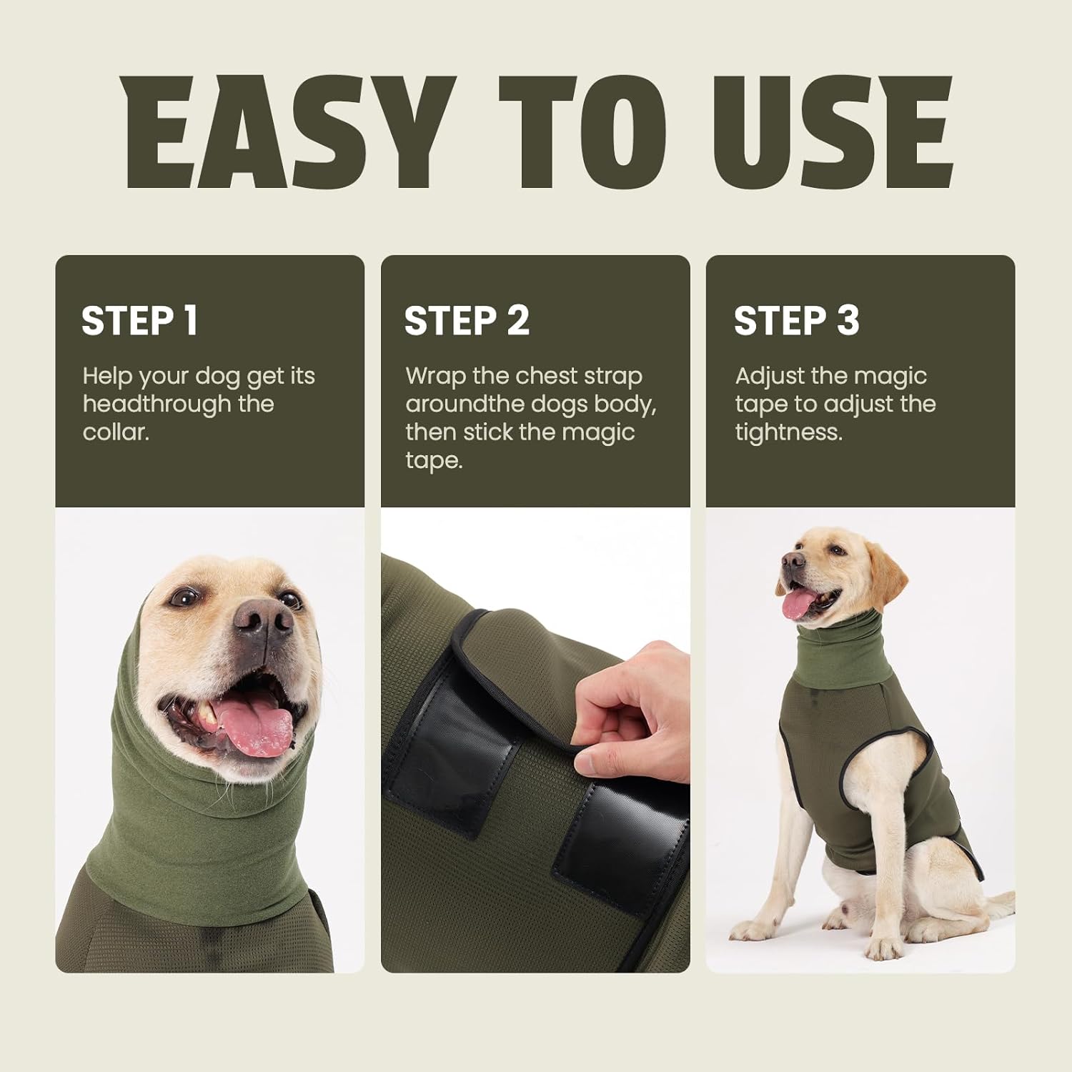 - 【Easy to Wear】: Without any complicated straps, our anxiety vest can be applied in minutes. Each anxiety body wrap has adjustable design on the neck and back will fit your dog better. The ear cover design not only prevents long-haired dogs from getting their fur wet while drinking or eating but also keeps them warm in cold weather. It supports machine & hand wash for easy maintenance.