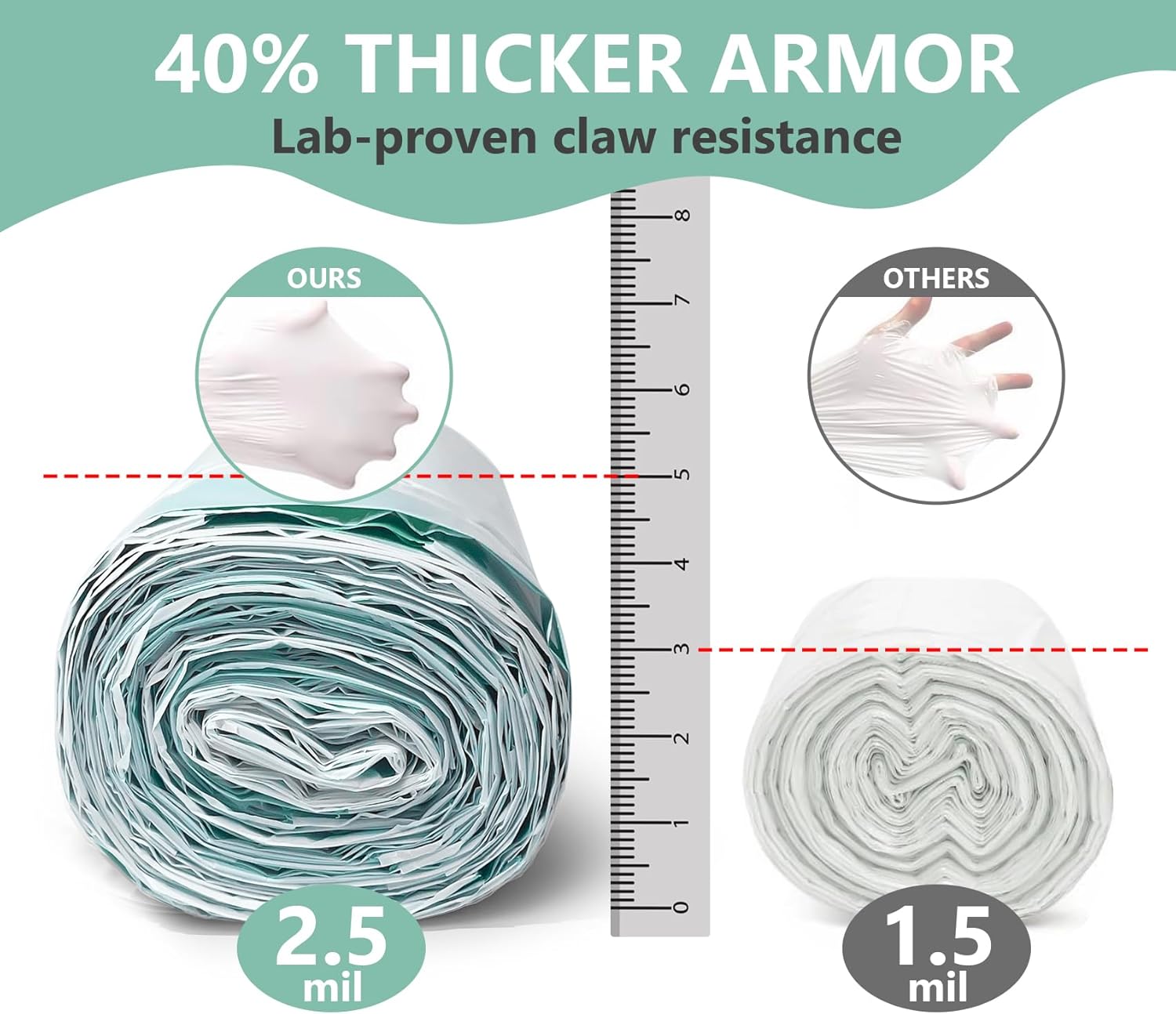 - 2mil Claw-Resistant Armor: "Lab-tested 2mil thickness withstands daily clawing. Holds 20lb wet litter without tears – zero leaks even with 10+ lbs of clumped waste."