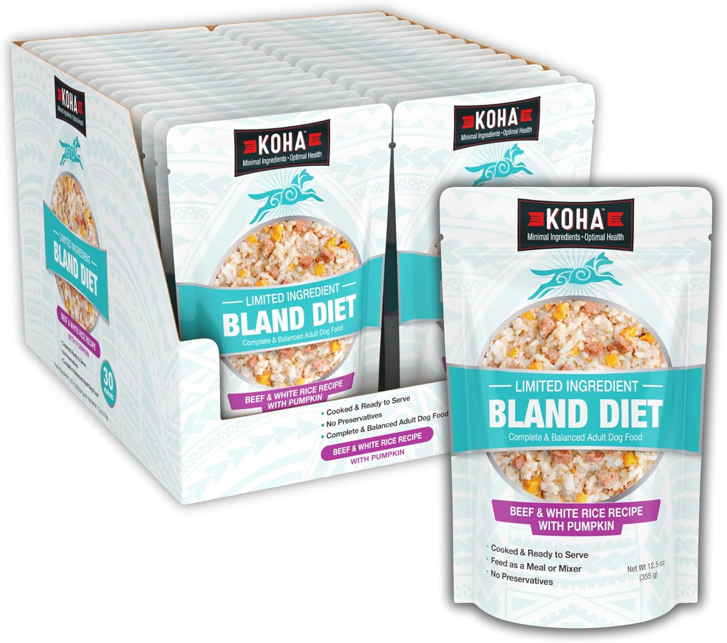 - PERFECT FOR SENSITIVE STOMACHS: KOHA Bland Diet is ideal for dogs struggling with loose stool, diarrhea, and upset stomach. This gently formulated limited ingredient wet dog food has just one protein source (beef) for easy digestion. It also includes white rice and pumpkin to support healthy stools and regularity.