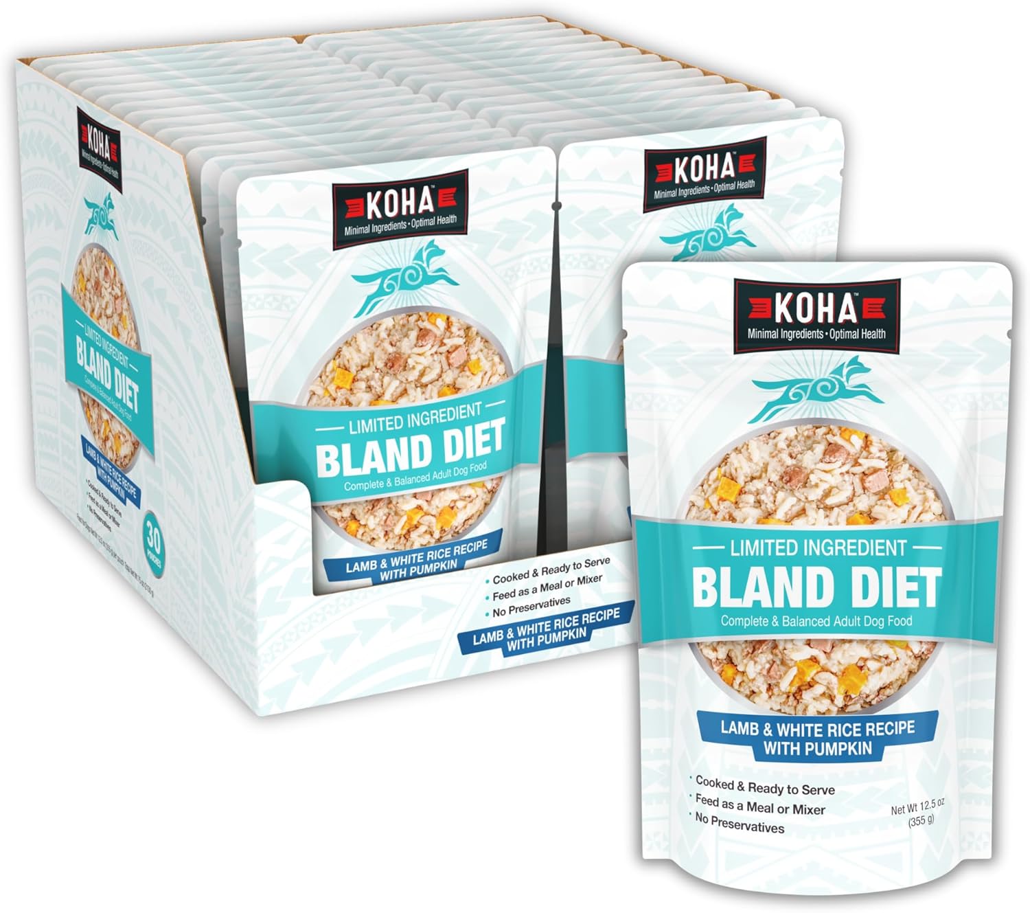 - PERFECT FOR SENSITIVE STOMACHS: KOHA Bland Diet is ideal for dogs struggling with loose stool, diarrhea, and upset stomach. This gently formulated limited ingredient wet dog food has just one protein source (lamb) for easy digestion. It also includes white rice and pumpkin to support healthy stools and regularity.