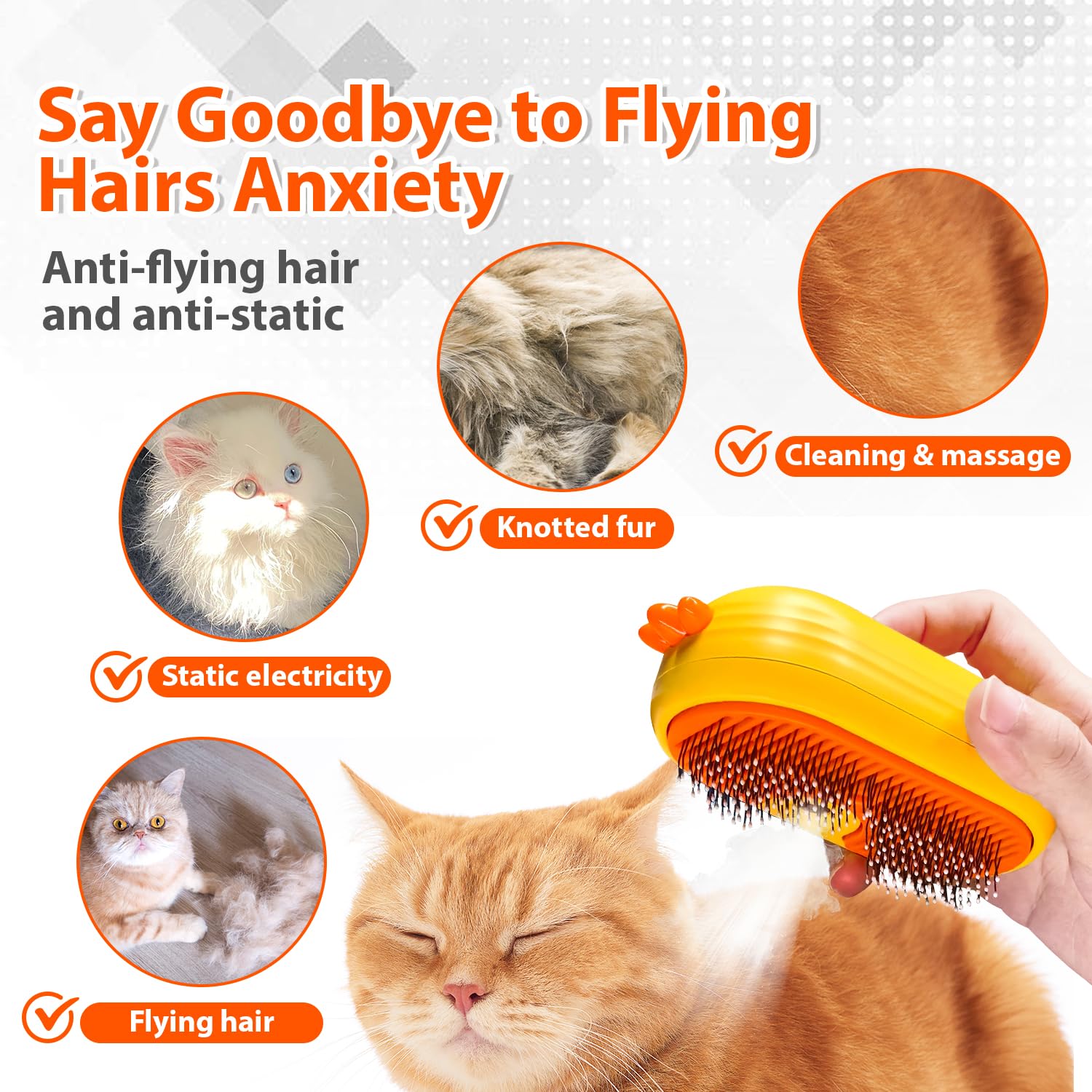 - 【3-In-1】: POIIOPY Cat steam brush is a multi-functional grooming and shedding tool that innovatively combines brushing and spraying. It can Remove loose hair, Spray mist, and Massage pets, which can meet the various needs of daily pet fur care. Note: Our cat steam brush only turns water into mist, but not heat water into hot vapor.