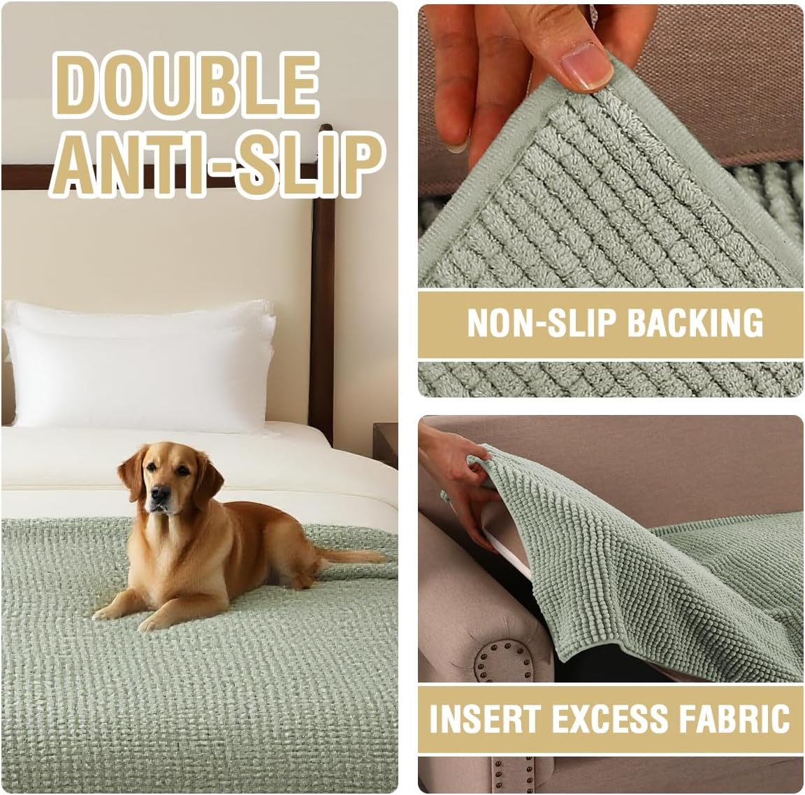 H.VERSAILTEX Plush Chenille Couch Cover for Dogs Pets Blanket for Bed Anti-Slip Soft and Durable Furniture Protector for Small Medium Large Cats Washable (52" x 82", Sea Foam)