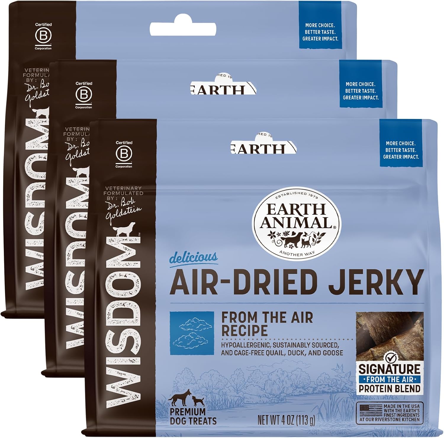 Earth Animal Wisdom Air-Dried from The Air Recipe Premium Natural Jerky Strips Dog Treats, 4 oz. Bag (Pack of 3)