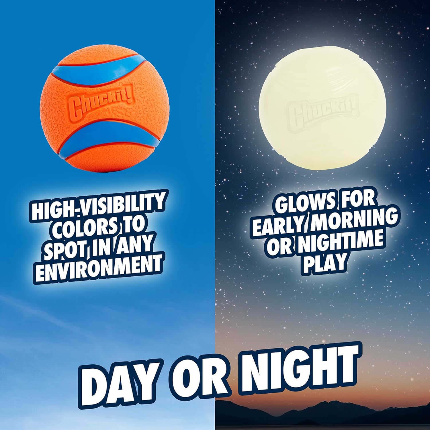 Chuckit! Ultra Ball Dog Toys - Size Large - for Dogs 60-100 lbs - Made from Durable Rubber - Super Bouncy - Day & Night Bundle - Floats in Water - 3-inch Diameter - Pack of 2