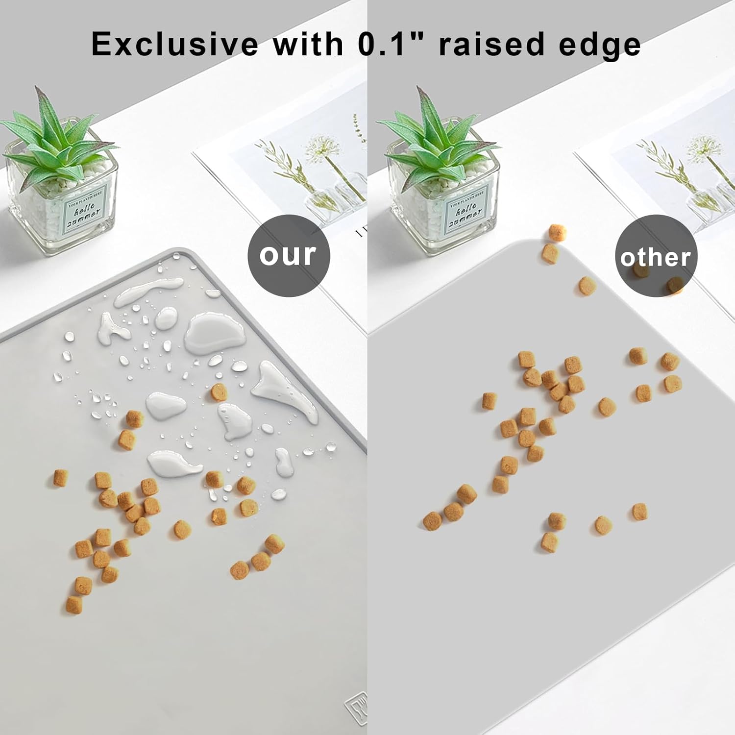 Dog Water Mat 2-Pack 20×16in - Silicone Dog Mats for Food and Water, Non-Slip Pet Feeding Mat for Floors, Waterproof Cat Bowl Mats to Prevent Spills -Dark Gray & Silver Gray