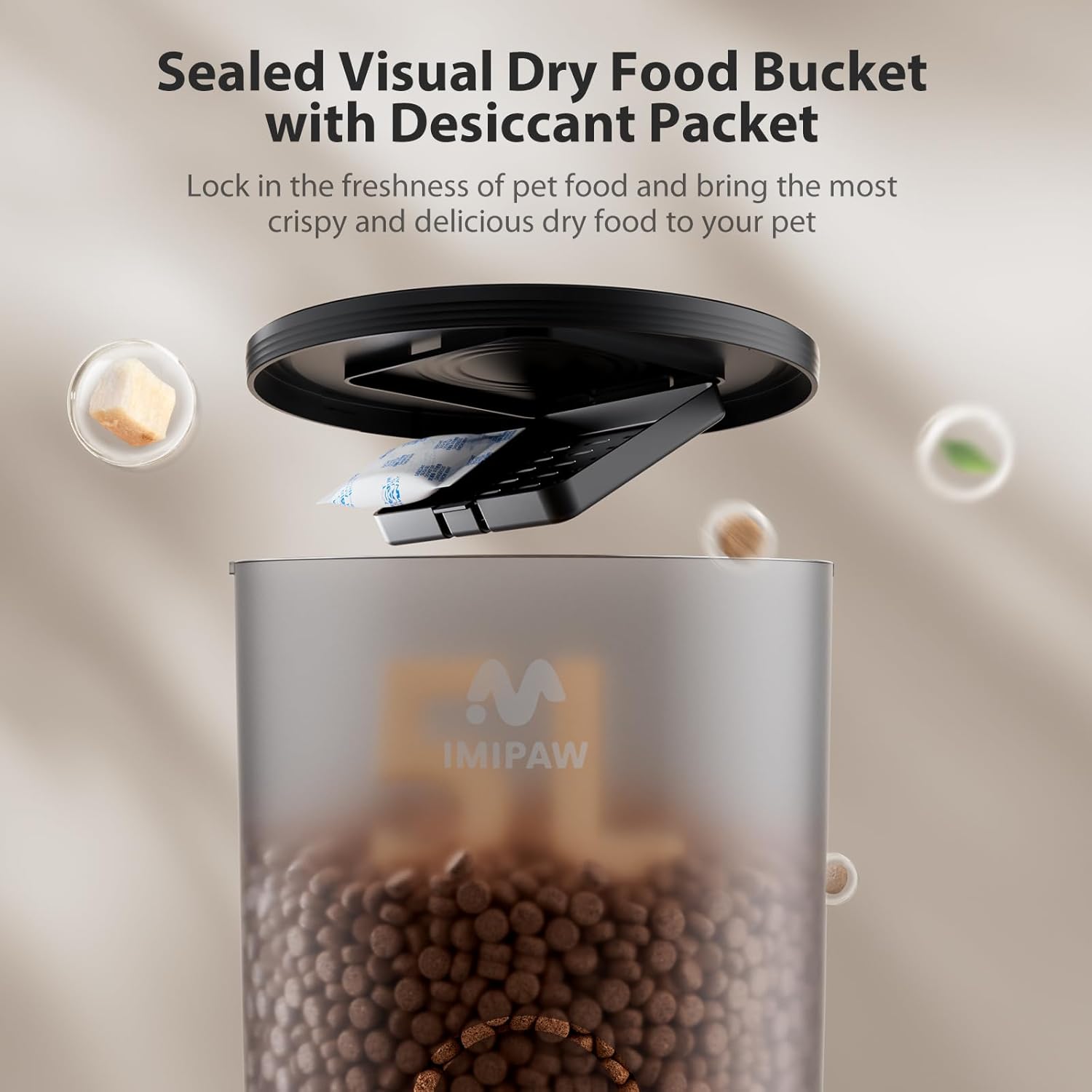 IMIPAW Automatic Cat Feeders, 5L Large Capacity, Timed Feeding Dry Food, Dual Power Design, Programmable Portion Size, 1-6 Meals Per Day, with Desiccant, Suitable for Small Pets Food Dispenser, Black