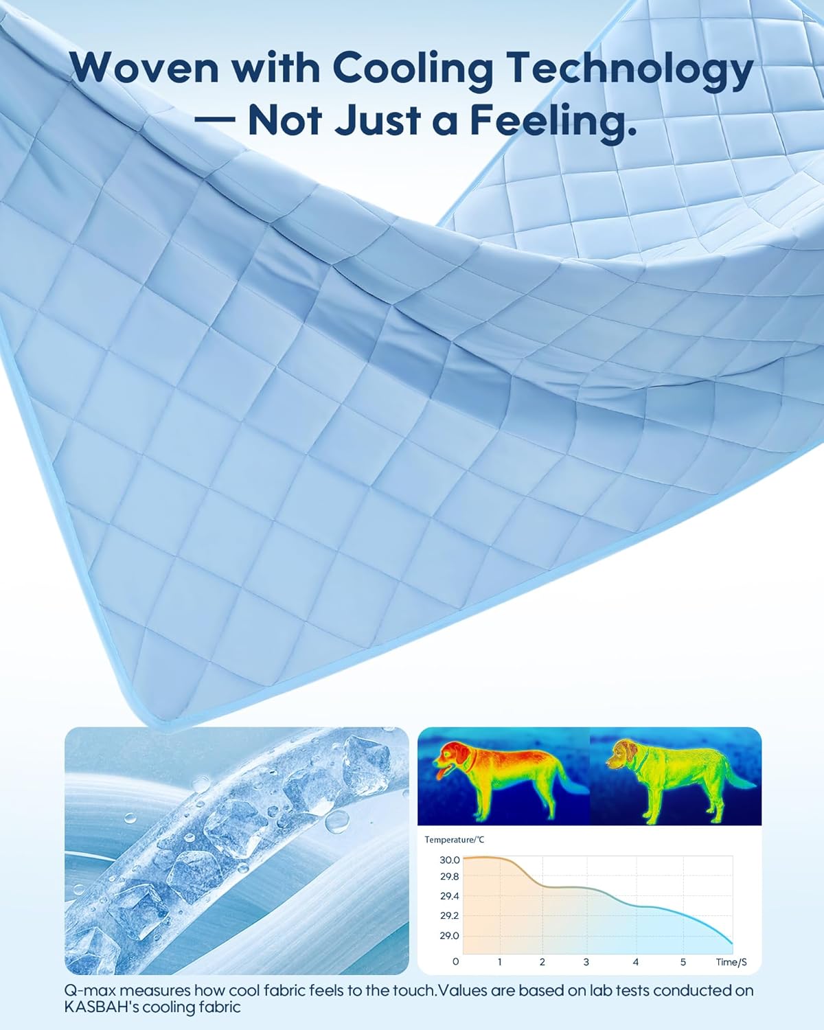 KASBAH Cooling Blanket for Dogs Waterproof Dog Blanket for Couch Bed Car Seat Washable Pet Blankets Reversible Design (Cool,Warm) Q-MAX>0.5 Dog Cooling Mat in 3 Sizes for Small, Medium & Large Dogs