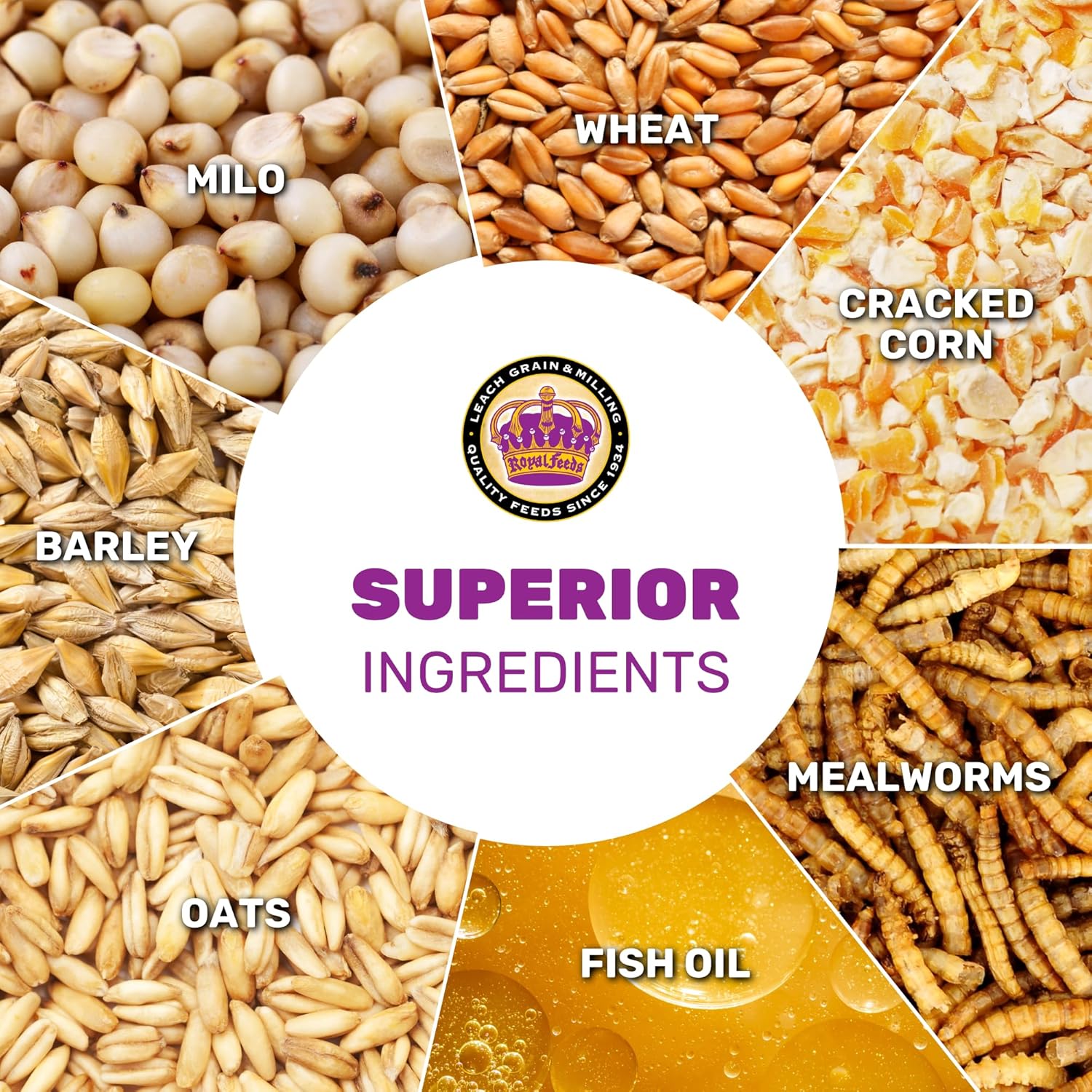 - Rich in Variety: A mix of grains and proteins for added diversity in your flock’s diet