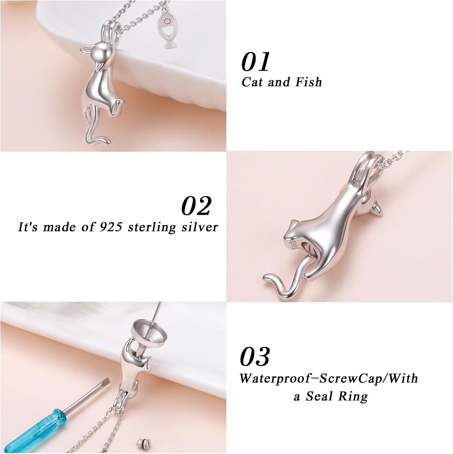 - [Cat Ashes Holder Material & Size]---Made of 925 sterling silver cat cremation necklace for ashes.Nickel-free,lead-free and cadmium-free.Includes a "18+2" adjustable chain for a perfect fit.Ashes pendant size:0.98*0.45inch.Keepsake necklaces for ashes of cat.