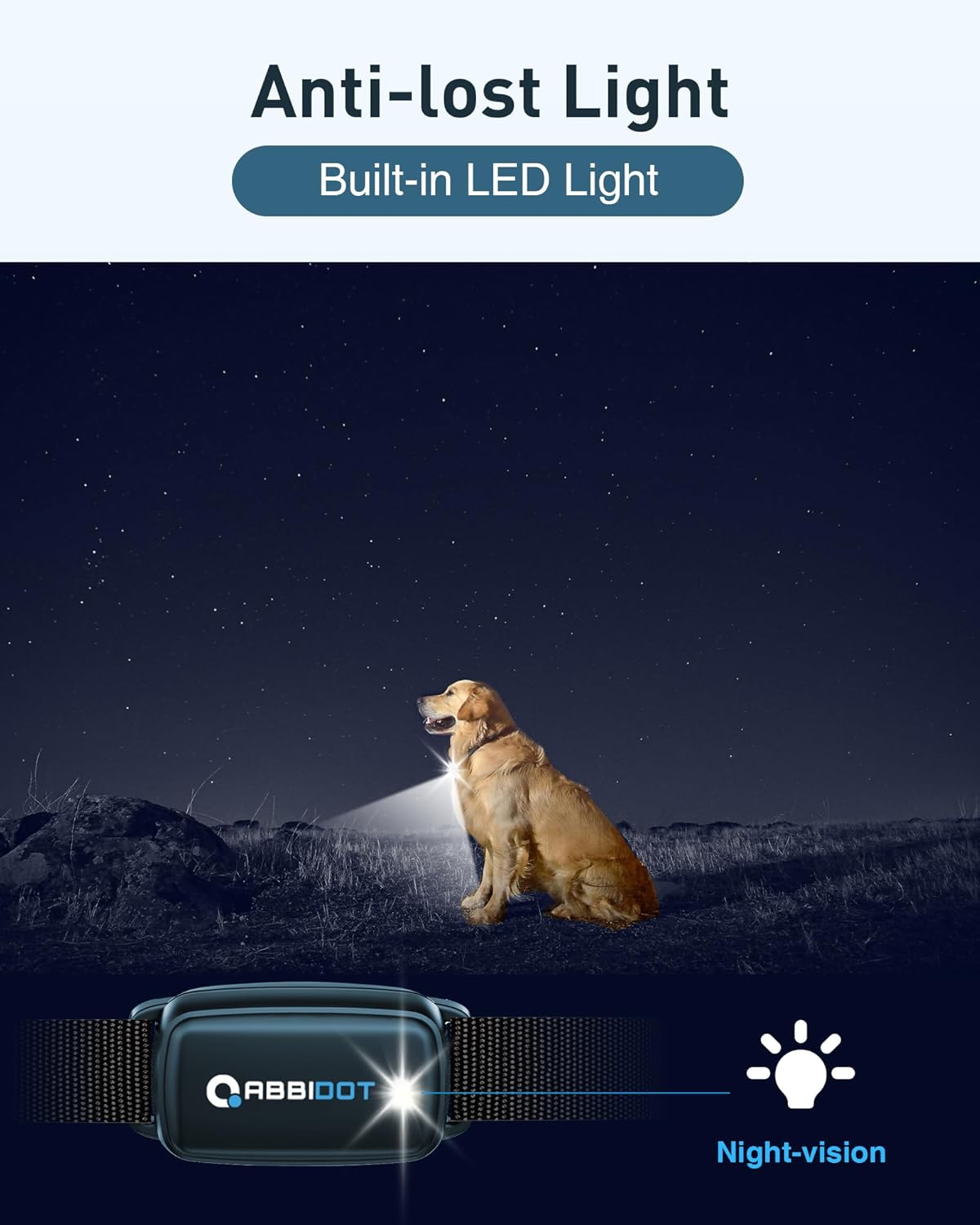 - IPX7 Waterproof Collar & LED Night Light: This receiver features an IPX7 waterproof rating, ensuring the electric dog collar operates reliably in various harsh weather conditions and challenging environments. The receiver can withstand brief submersion, making it suitable for rainy days, humid settings, and accidental splashes—ideal for both outdoor and high-frequency daily use. (Please note: The remote control must be kept away from water during use.) The LED night light ensures your dog is easy to locate in low-light conditions, providing peace of mind during evening walks or outdoor play.