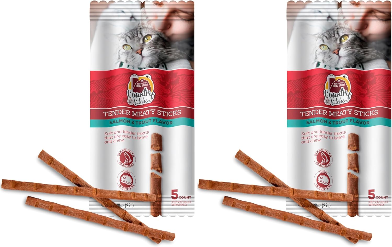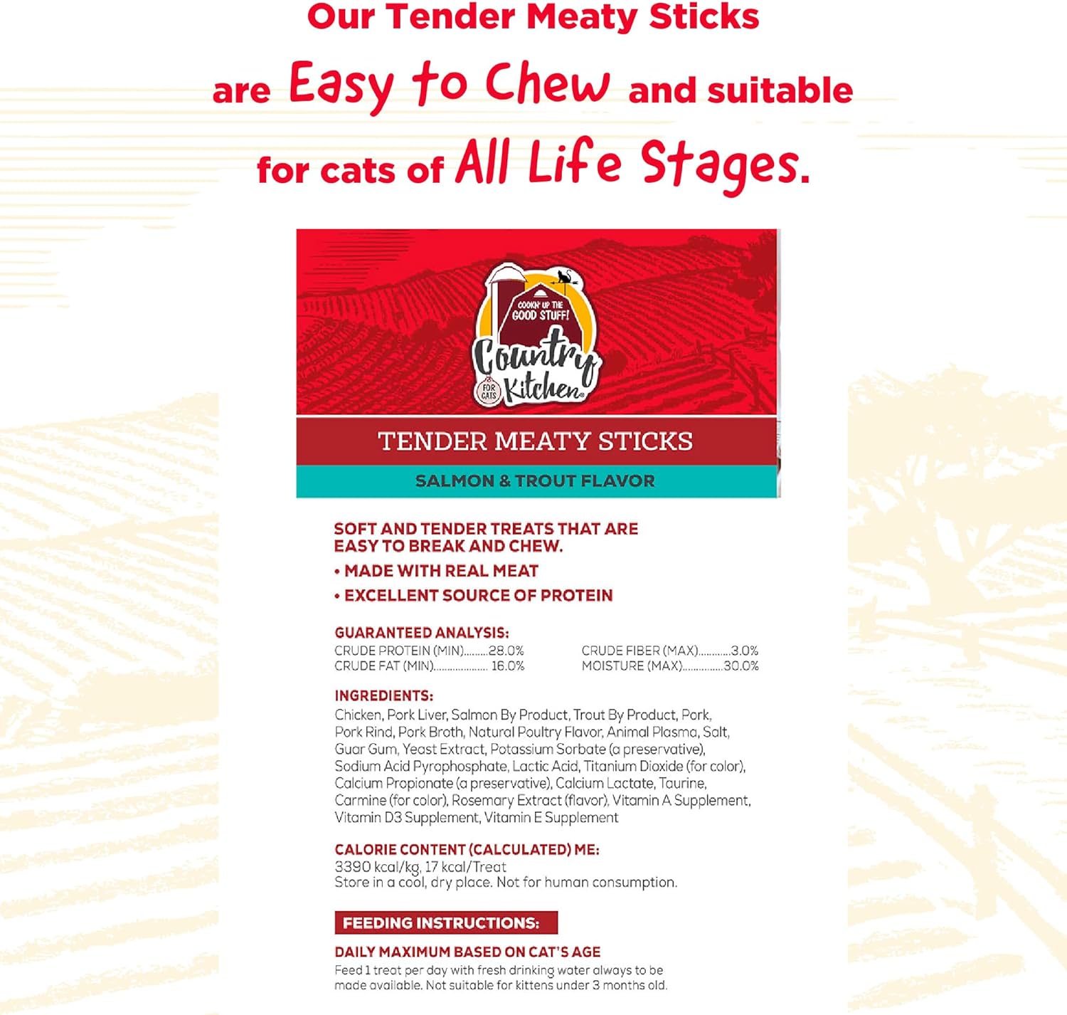 - Country Kitchen Salmon & Trout Tender Meaty Sticks Cat Treats: Our cat treats are a soft & tender treat that's easy to break and chew