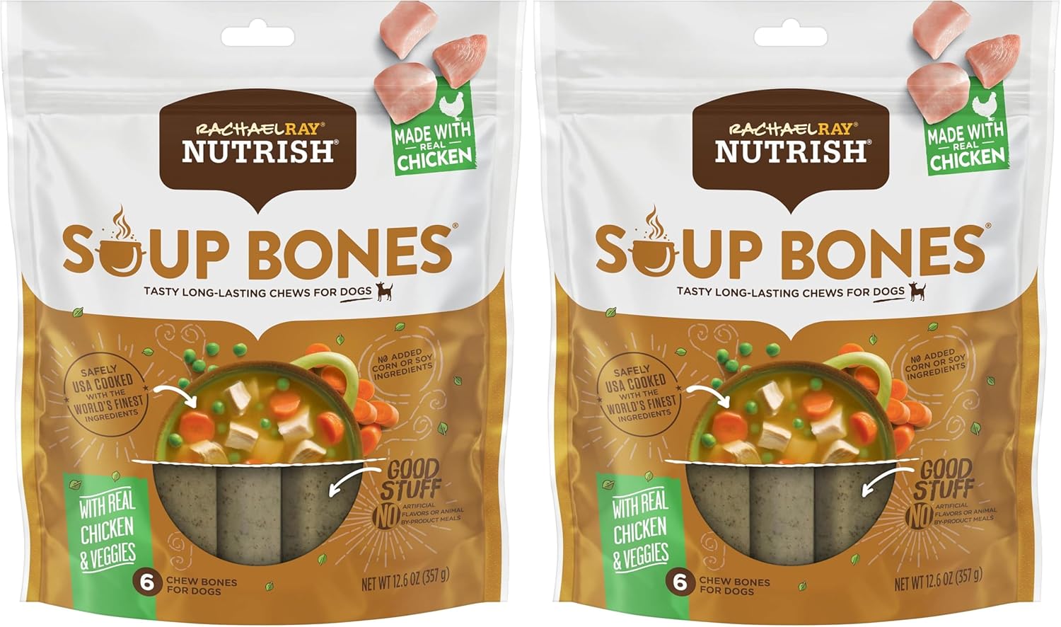 Nutrish Rachael Ray Soup Bones Dog Treats, Chicken & Veggies Flavor, 6 Bones (Pack of 2)