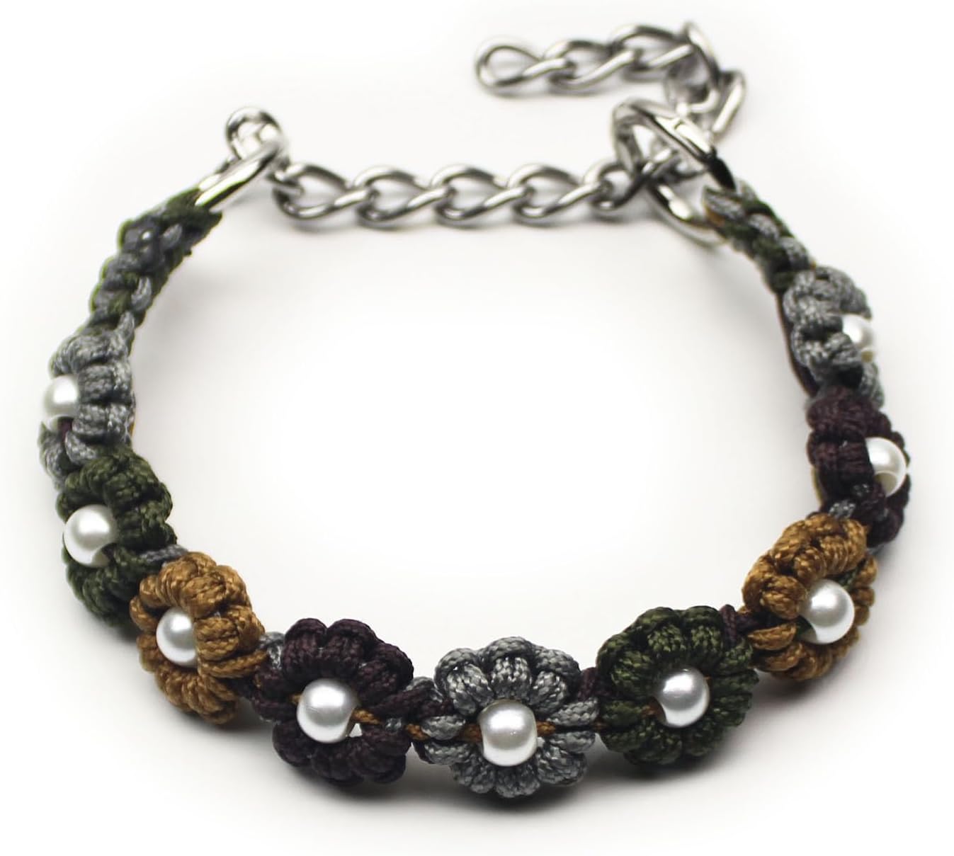 - HANDCRAFTED DESIGN: Beautiful hand-knotted paracord collar featuring colorful flower patterns with pearl-like beads, creating a unique and charming accessory for your pet