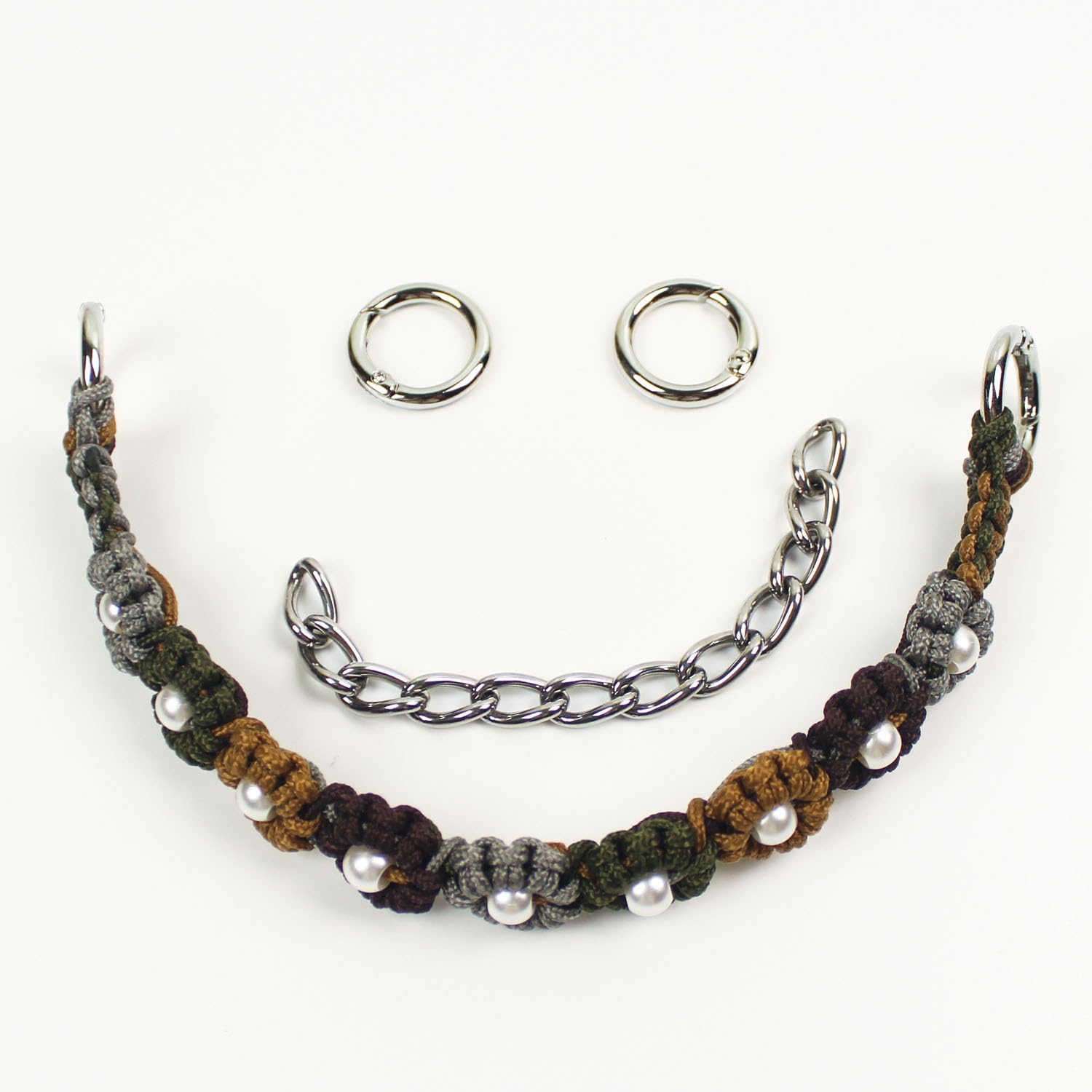 - Material : Metal Chain, Paracord, Plastic Pearl Beads
