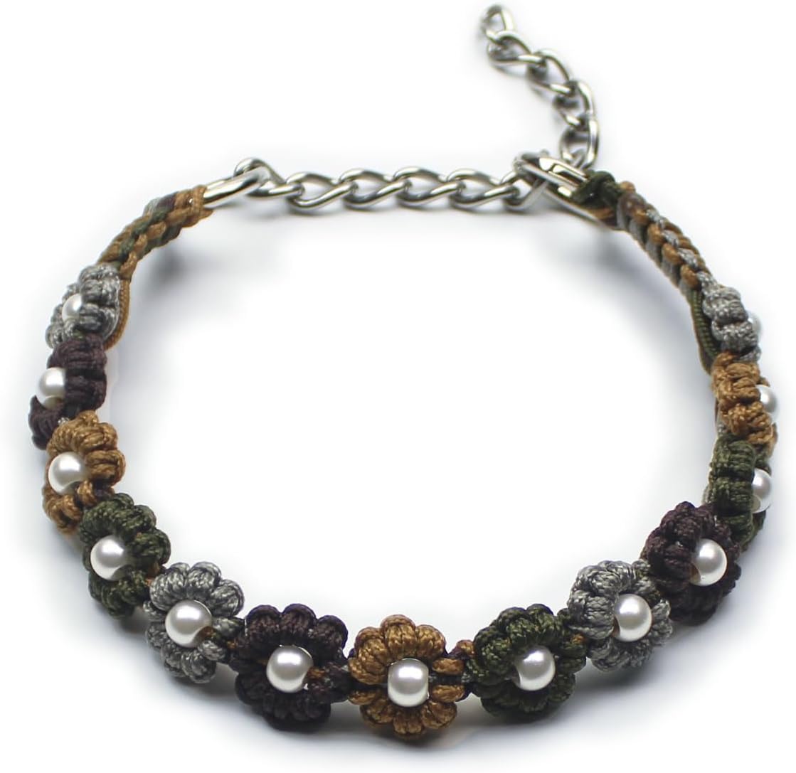 - HANDCRAFTED DESIGN: Beautiful hand-knotted paracord collar featuring colorful flower patterns with pearl-like beads, creating a unique and charming accessory for your pet