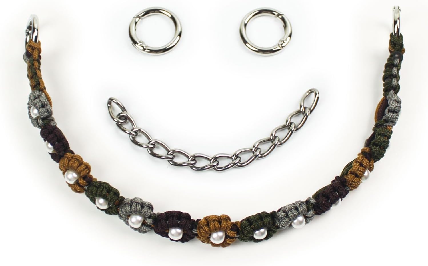 - Material : Metal Chain, Paracord, Plastic Pearl Beads