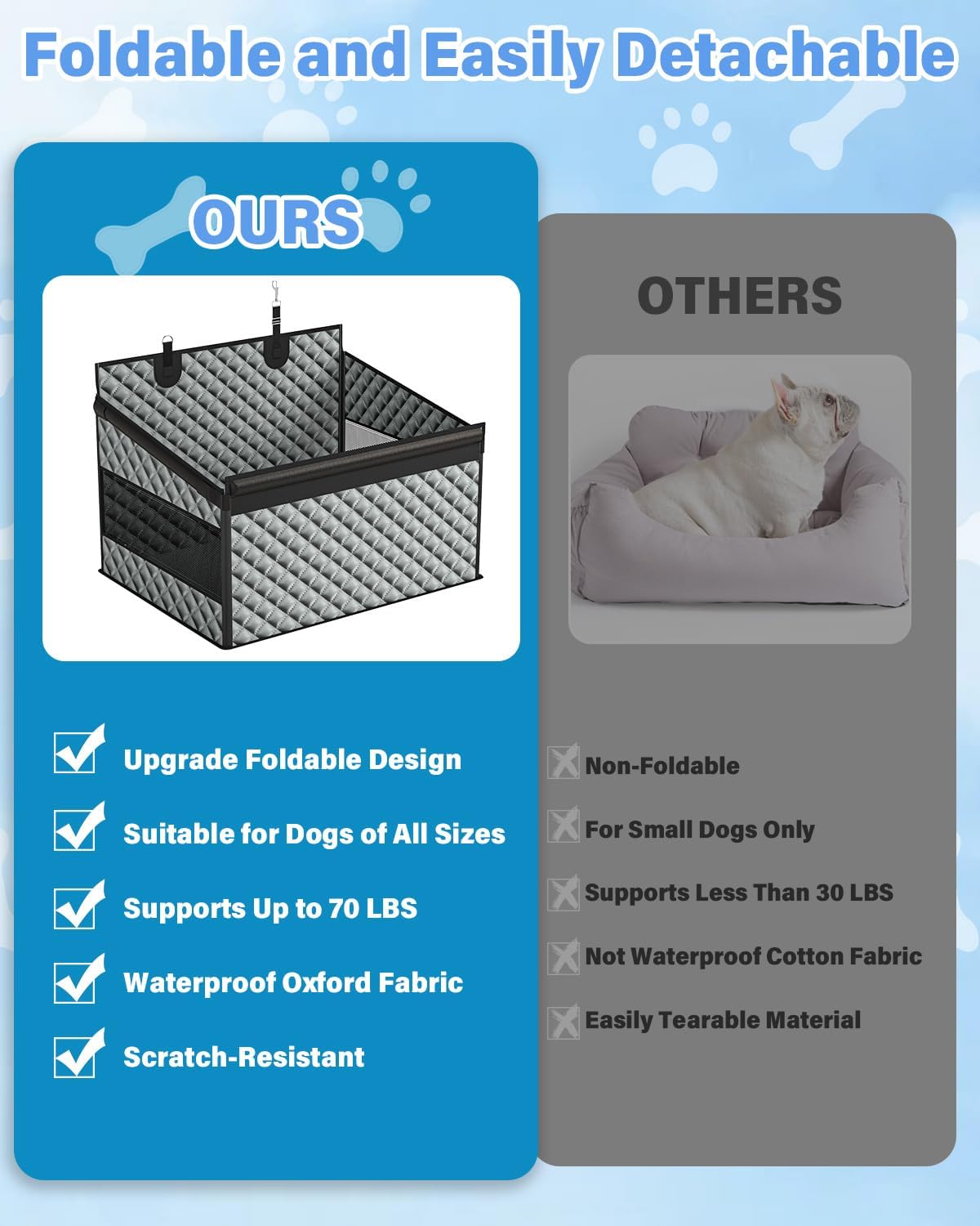 Dog Car Seat for Large Dogs, Back Seat Extender for Dogs, Foldable Pet Car Seat with Waterproof Oxford Fabric and Non-Slip Bottom, All-Around Protection and Strong Support, Grey