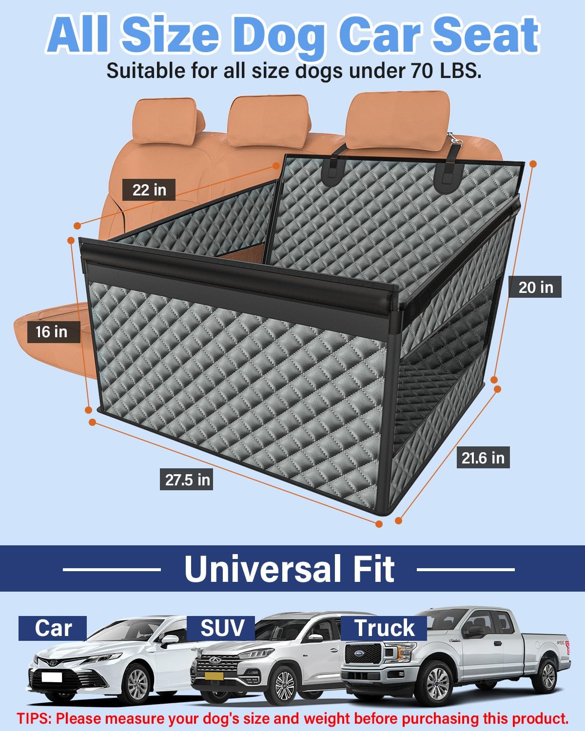 - ✅ Spacious Comfort for Dogs: Measuring 27.5*21.6*20 inches, this large dog car seat expands your vehicle’s back seat area by approximately 40%, offering more space for your pet to move and rest comfortably. Ideal for both short trips and long drives, it helps reduce fatigue and anxiety.