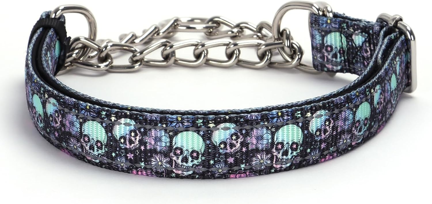 Choke Collar for Dogs,Stainless Steel Chain Collar Martingale, No Pull Slip Cinch Training Escape Proof Heavy Duty Dog Collar for Small Medium Large Pet Boy Male Dogs,Skull L