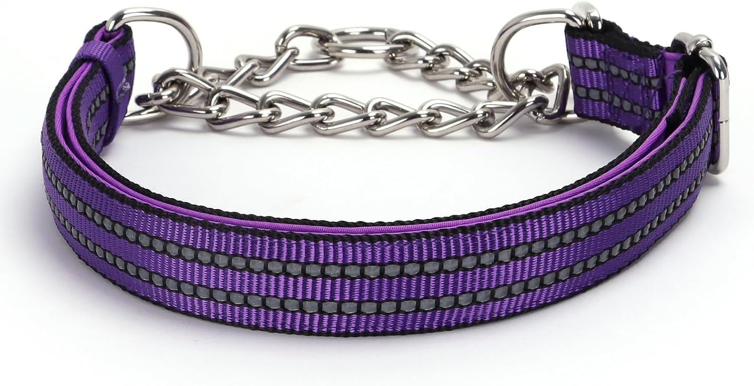 Martingale Collar with Chain,Stainless Steel Chain for Dogs, No Pull Slip Cinch Choker Choke Collar Training Escape Proof Heavy Duty Dog Collar for Small Medium Large Pet Boy Male Dogs,Purple M