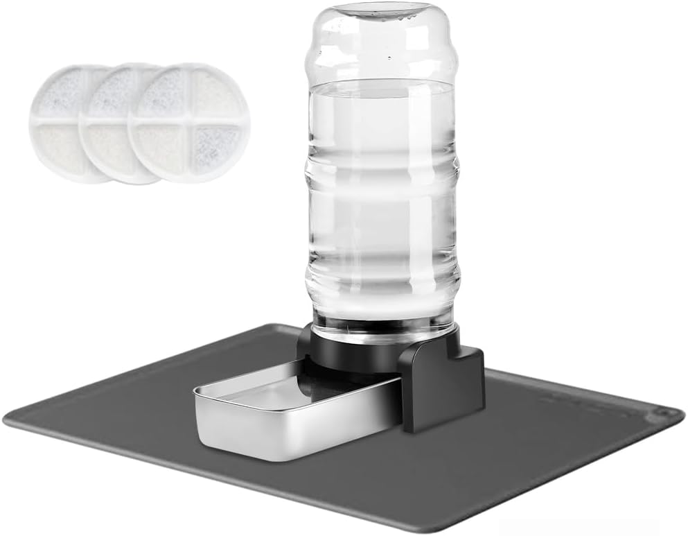 - ✅【Quality Material】: The Pet water dispenser is made from durable, corrosion-resistant stainless steel, ensuring long-lasting use. It's non-deformable, rust-free, and easy to clean, pet-safe design,Thoughtfully equipped with a 50 cm x 40 cm silicone placemat to keep the dog water bowl stable and the floor dry