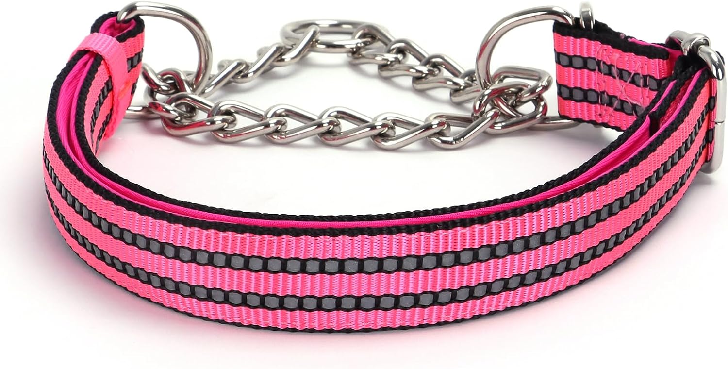 Martingale Dog Collar with Chain,Reflective Nylon Soft Padded Adjustable Choke Collar for for Small Medium Large Pet Boy Male Dogs