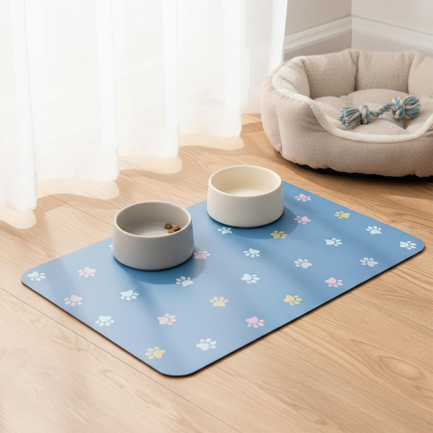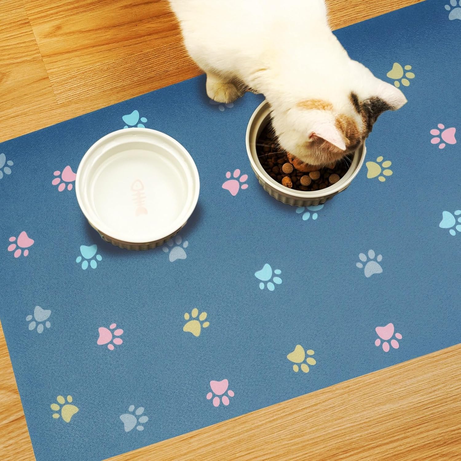 Cat Food Mat Absorbent Dog Mat for Food and Water Non Slip Quick Dry Dog Bowl Mats for Floors 24" X 16" Paw Lake Blue