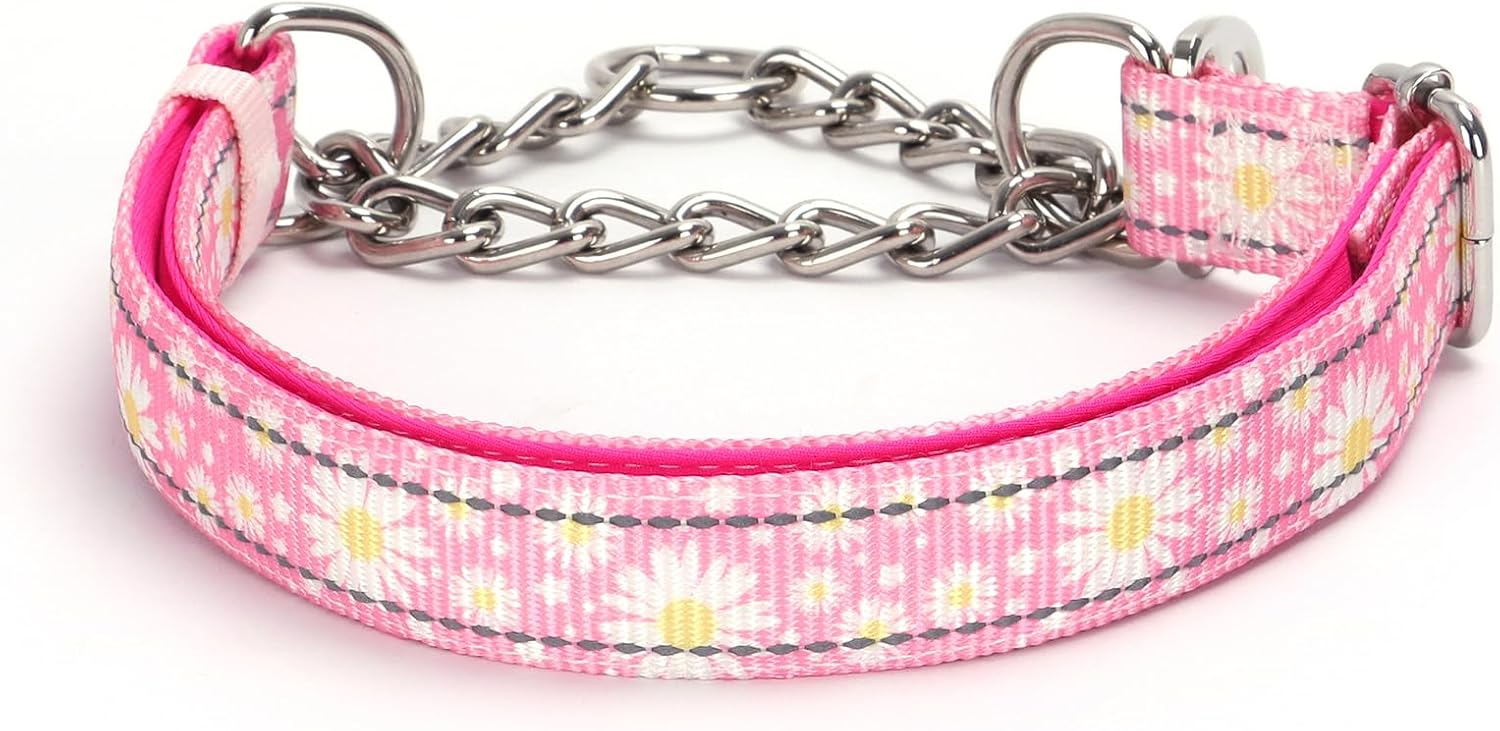 Choke Chains Large Dogs,Stainless Steel Chain Dog Martingale Collar, No Pull Slip Cinch Training Escape Proof Heavy Duty Dog Collar for Small Medium Large Pet Girl Female Dogs,Pink Flower XL