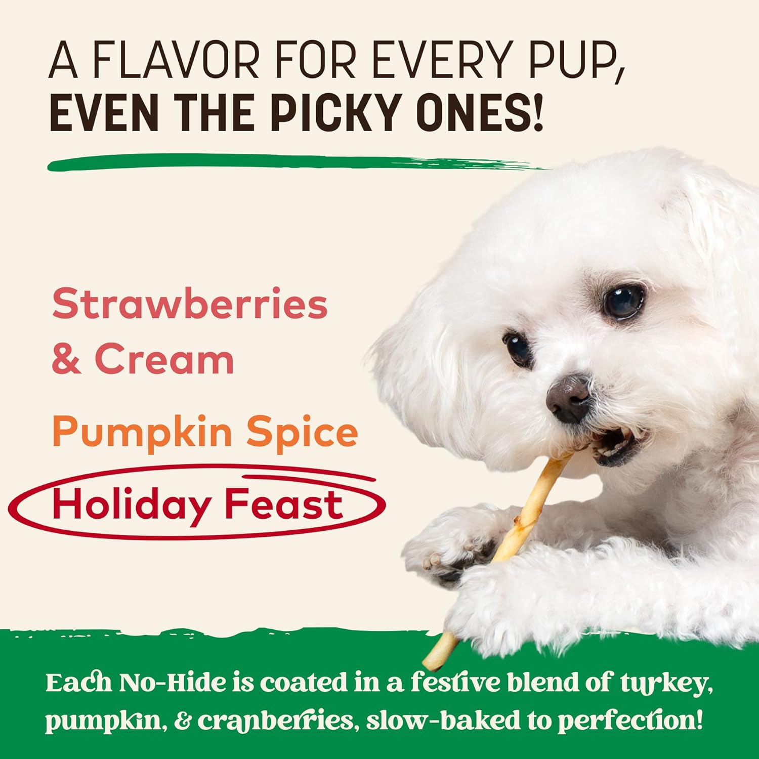 - THERE'S NO-THING LIKE IT: No-Hide is the healthy alternative to rawhide & bully sticks. These all natural, easily digestible No-Hide Stix are made with a festive blend of turkey, pumpkin, & cranberry. Great for teeth and gums