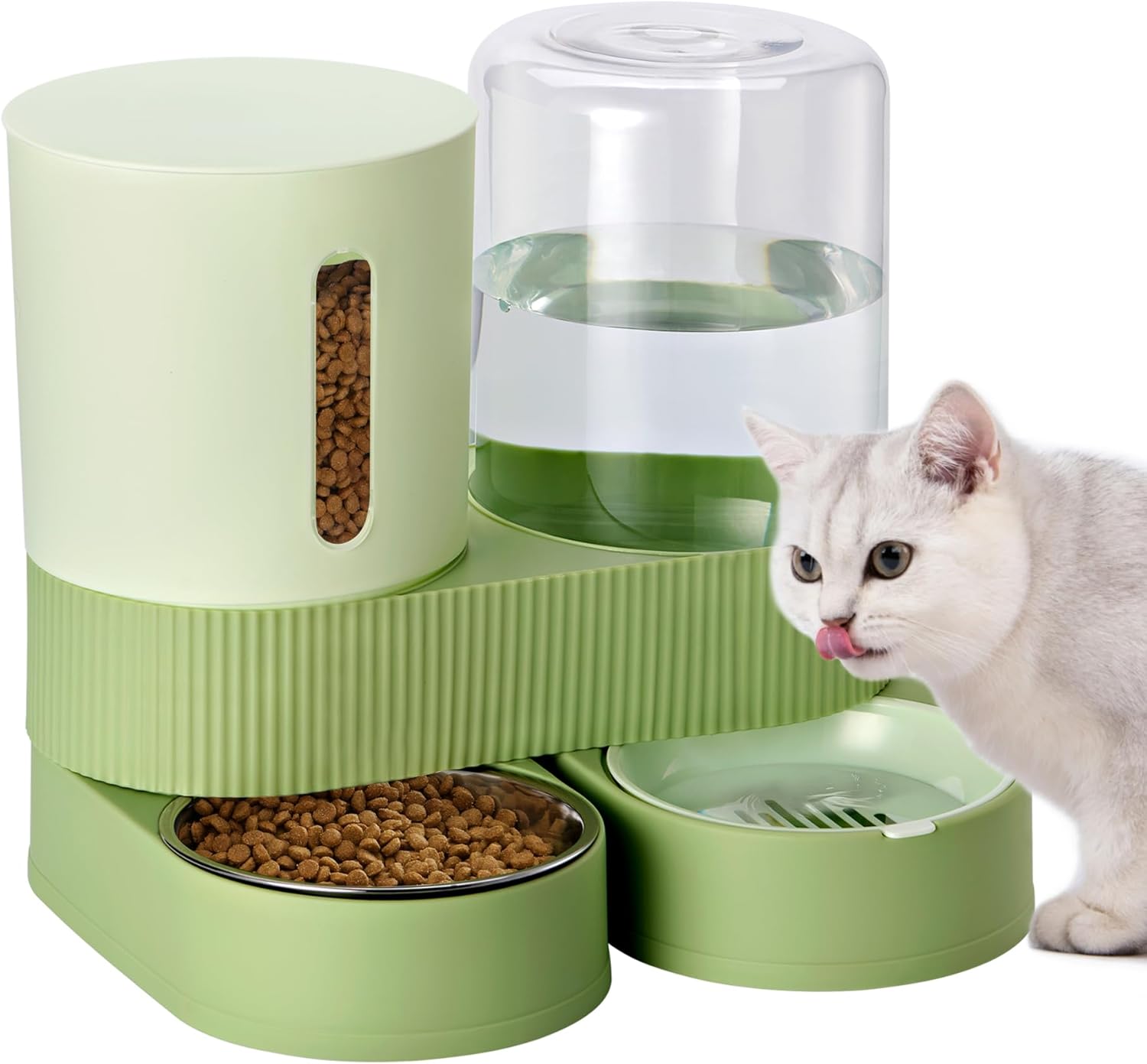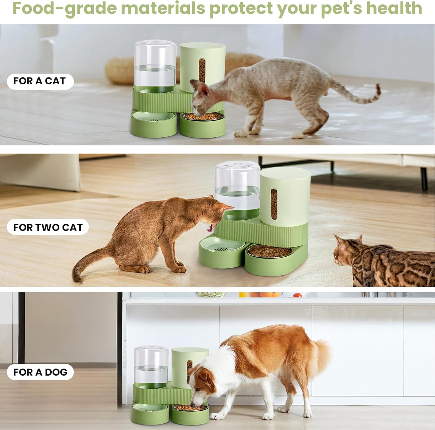 Automatic Dog Cat Water Dispenser Gravity Feeder and Water Dispenser Stainless Steel 2-in-1 Set Large Capacity Dispenser for Pets Dogs, Puppies, Kittens(Green)