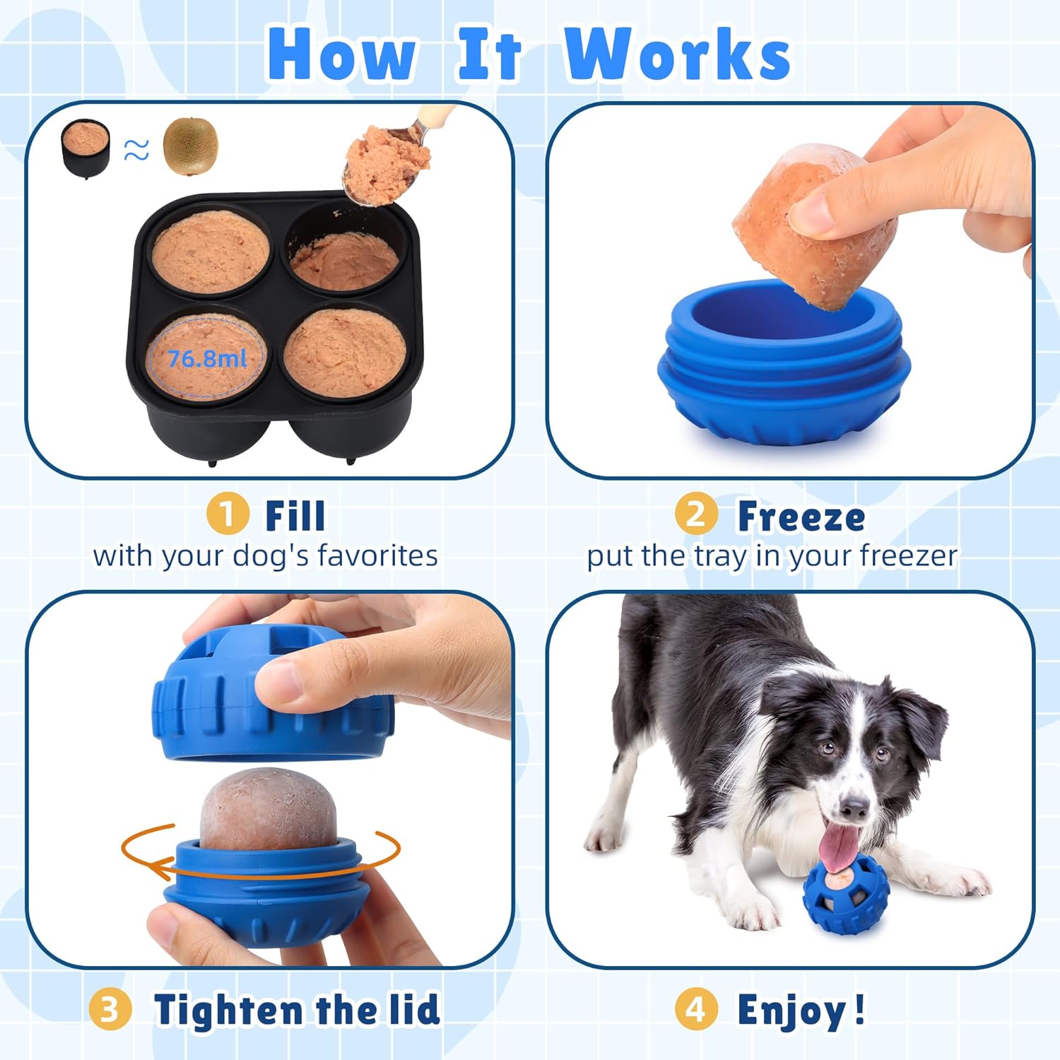 - 【Stuffable Dog Toys】What You'll Get: 1x enrichment toys for dogs+1x Stopper+1x 4-Grid Mold+1x Recipe Guide+1x Kraft Box. Whip up tasty DIY lick treats using the mold.