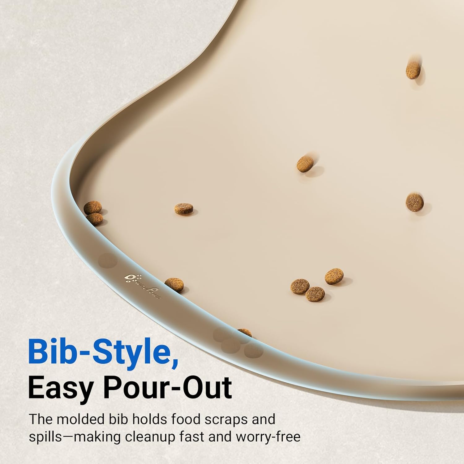 - Unique FurBib Design: Our thoughtful FurBib design helps guide water and crumbs back onto the pet feeding mat when lifted. Less scatter, less cleanup. The small pocket (10mm deep) suits most cat food sizes, while the medium pocket (16mm deep) easily contains common dog kibble