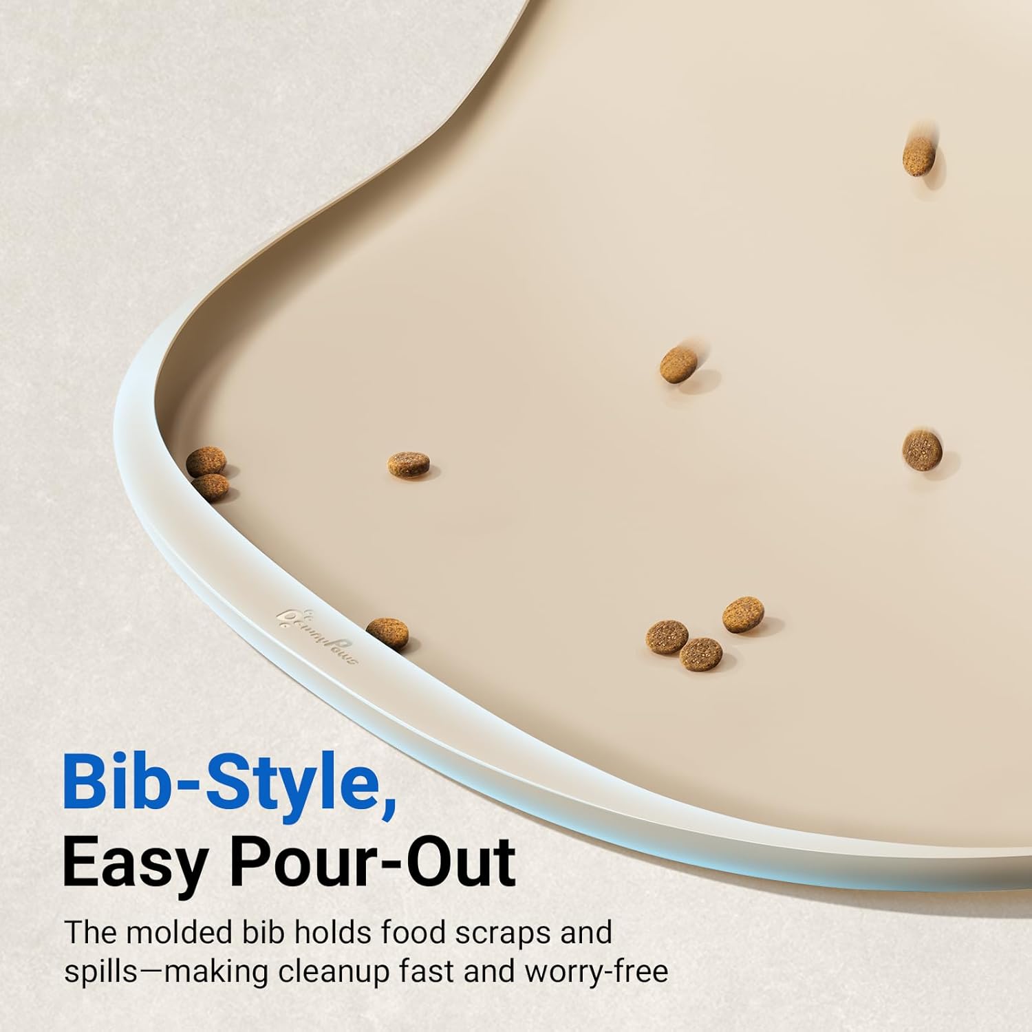 DownyPaws Dog Food Mats for Floors Waterproof, BPA Free Silicone Dog Bowl Mat, Non-Slip Pet Feeding Mat with High Raised Edge, Cat Placemat for Messy Drinkers, 24"×17", Almond