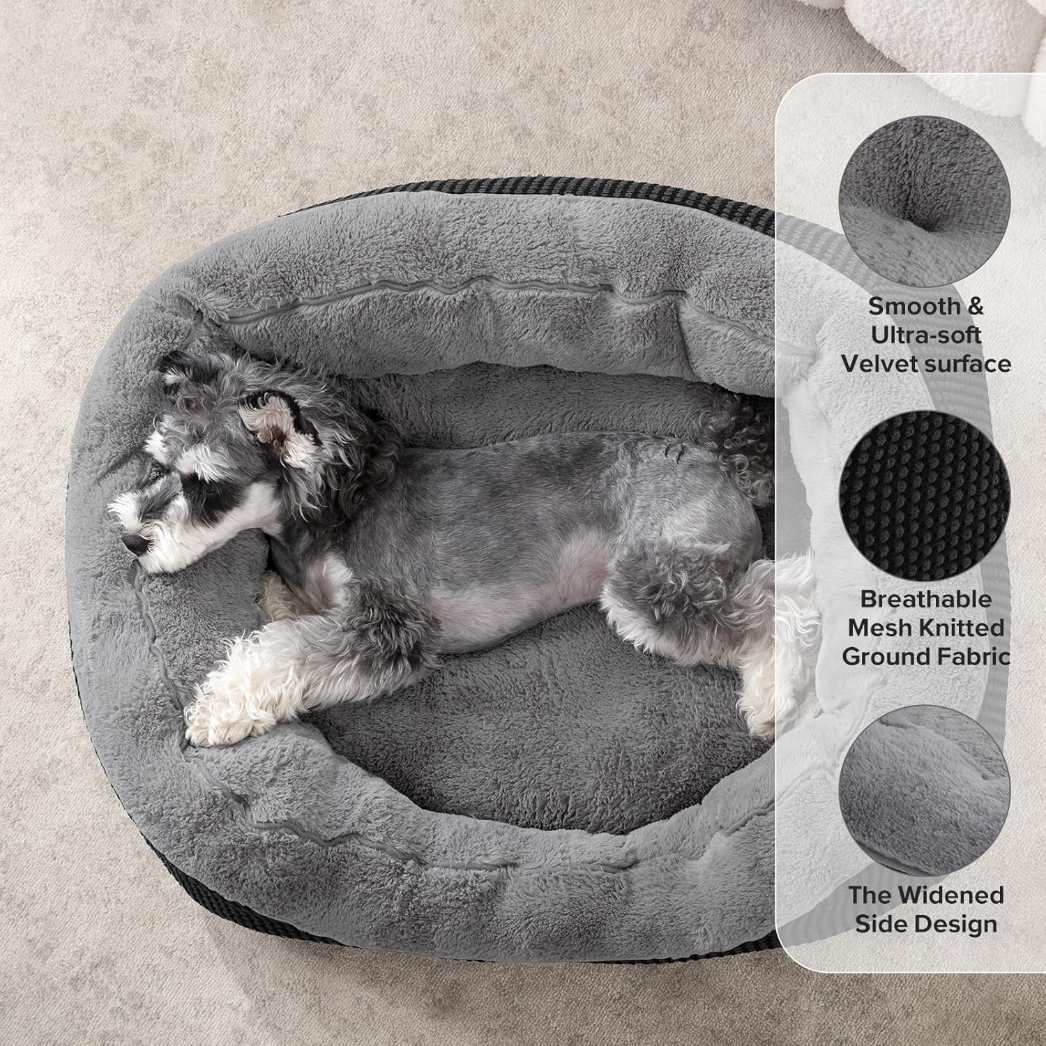- 🐶ULTRA SOFT DOG BED: The sleeping surface of the pet bed features luxurious soft plush, soft and cozy plush provides a calming and anti-anxiety feel, allowing pets to fall into a deep sleep faster and gentle on the pet's nose and paw. The bottom and sides stuffed with thickened and eco-friendly pp cotton with strong supports to bony and joint areas, pressure relief, relieve joint pain.