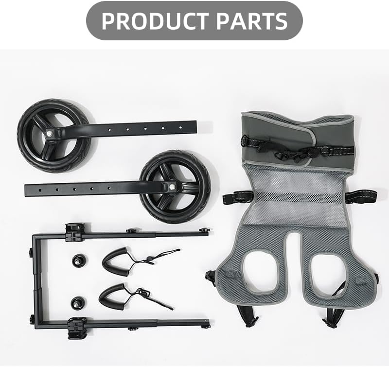 - 🦵 Vet-Inspired Leg Support - Height-adjustable leg rests with silicone tube sleeves cradle hind limbs comfortably. Weight-balanced design aligns with joints for minimal effort movement and zero pressure sores.