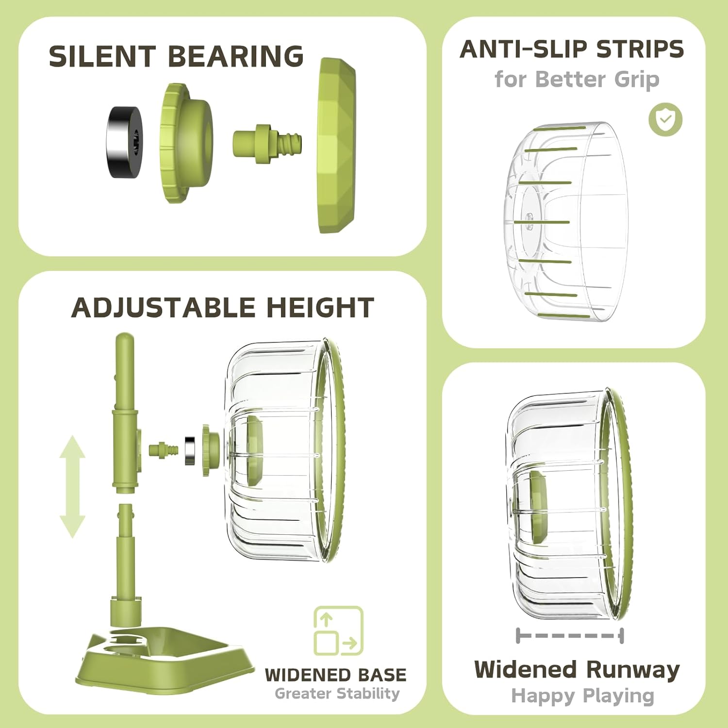Hamster Exercise Wheels, Quiet Spinner Hamster Running Wheels with Adjustable Stand for Small Animals Dwarf Syrian Hedgehog Gerbils Mice (Green, Medium(7.6 inch))