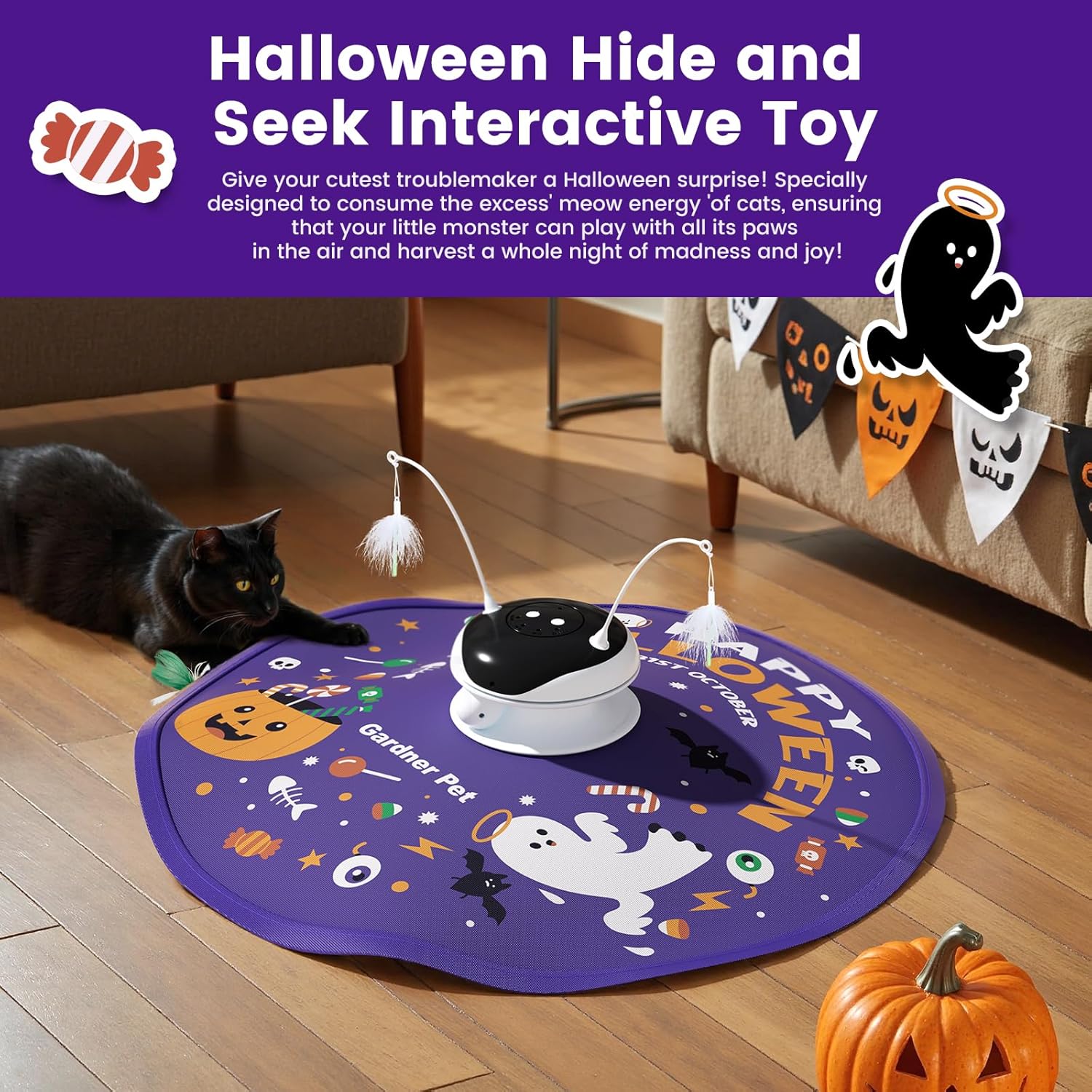 Gardner Pet Halloween Cat Laser Toys, Chargeable 5 in1 Hide and Seek Automatic Interactive Cat Toy, Moving Ambush Feather, Track Balls,Indoor Exercise Kicker 24 inch Cover for All Breeds, Chirping