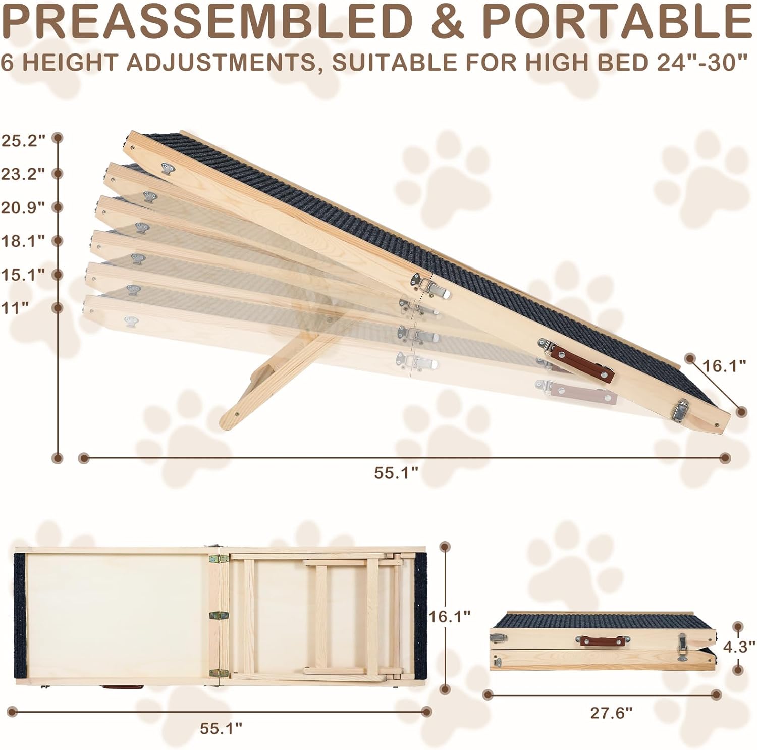 Folding Dog Ramp Safety, Wooden Adjustable Height Pet Ramps, Potable Dog Steps with Non-Slip Traction Mat, Dog Step for Bed, Dogs Stairs for SUV Car, Couch, Safe, Height Bed