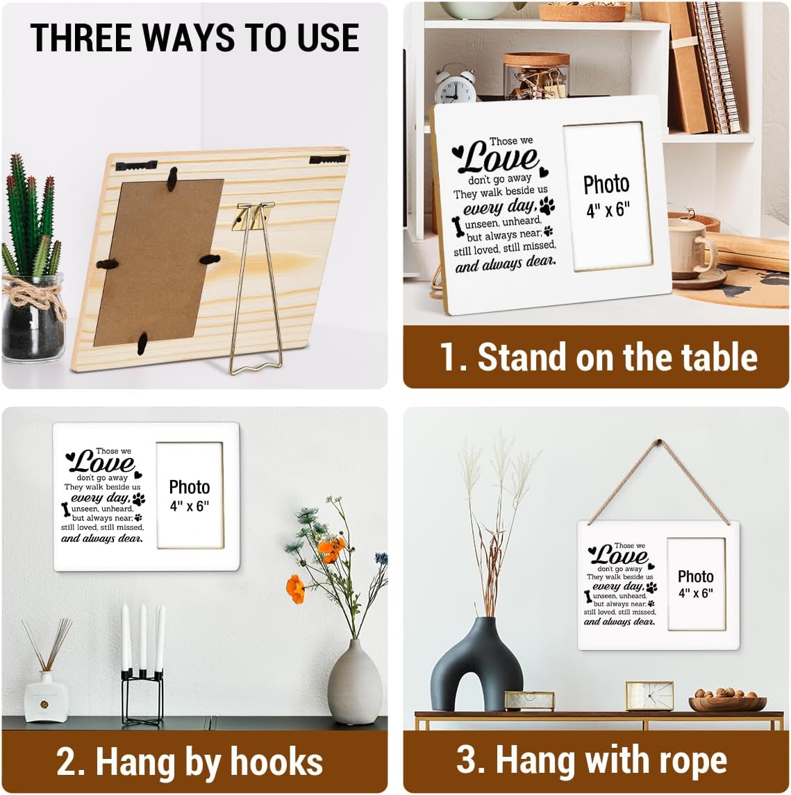 Pet Memorial Gift for Dogs Photo Frame, Sympathy Gifts for Loss of Loved Pet, Dog Bereavement Gifts, Cat Remembrance Gift Wooden Picture Frames, Photo 4 x 6 Inches