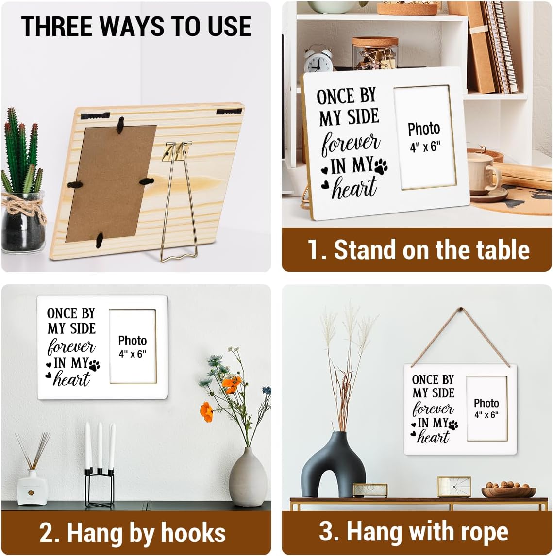 Dog Memorial Gifts Photo Frame, Pet Memorial Gifts for Dogs, Lost of Pet Sympathy Present, Once by My Side Forever in My Heart Wooden Picture Frames with Paw Print, Photo 4 x 6 Inches