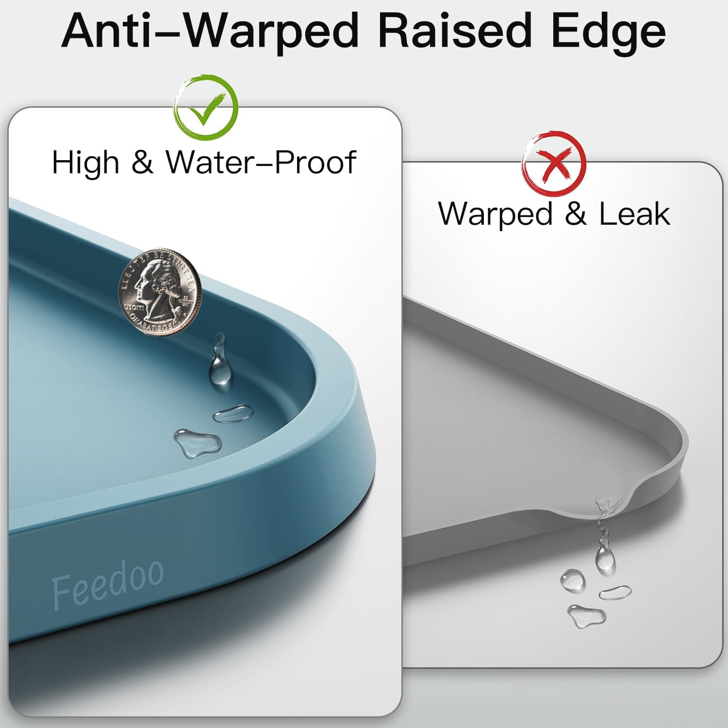 - WARPED RESISTANT RAISED EDGE: Features a 0.4inch(10mm) raised, trapezoid edge design that resists warping, ensuring 100% mess-free feeding. The only mat with deformation-resistant edges on the market.
