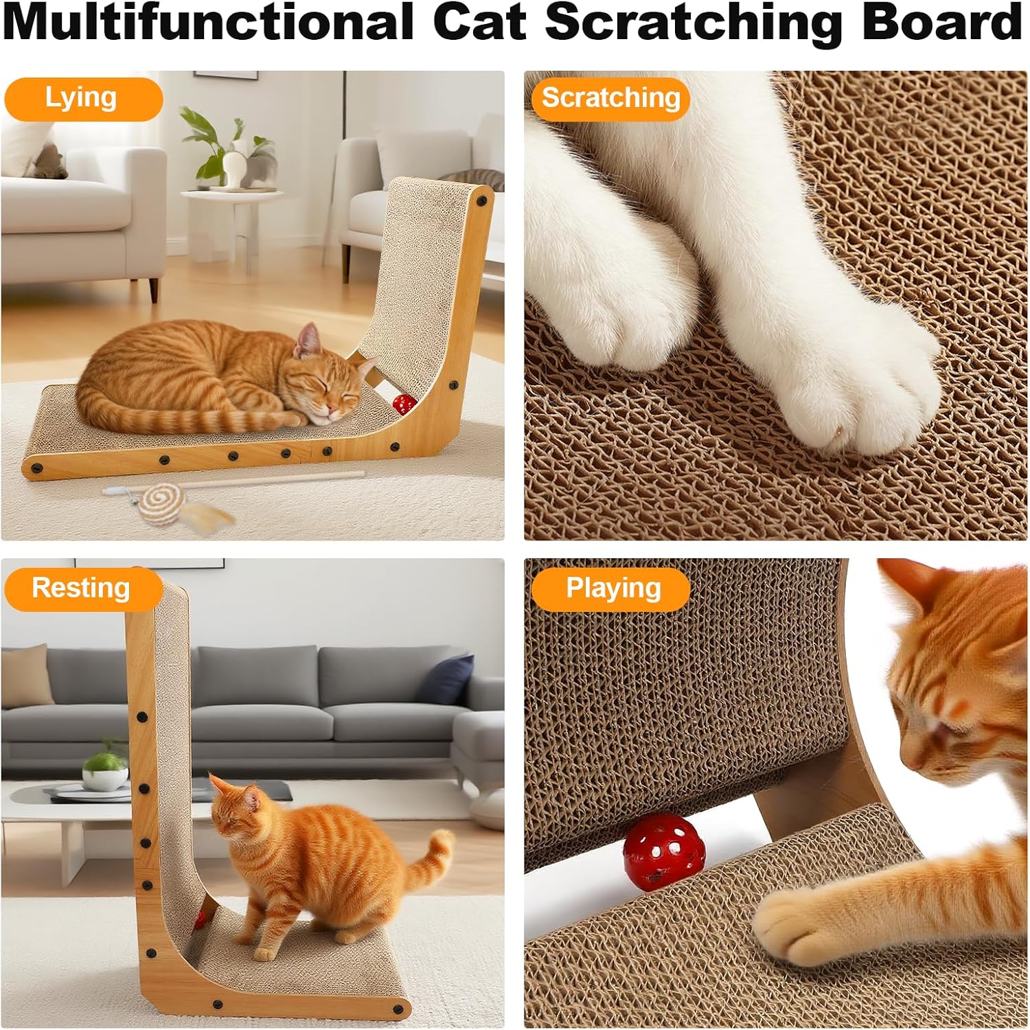 - Multi-functional Use:2-in-1 cat scratching board design, the cardboard scratching board allows your cat to curl up inside and rest to sharpen their claws, giving your cat a great sense of security; the L-shaped large size cat scratching board allows your cat to lie down, sleep, or stand up to sharpen their claws, giving your cat the freedom to sharpen their claws;
