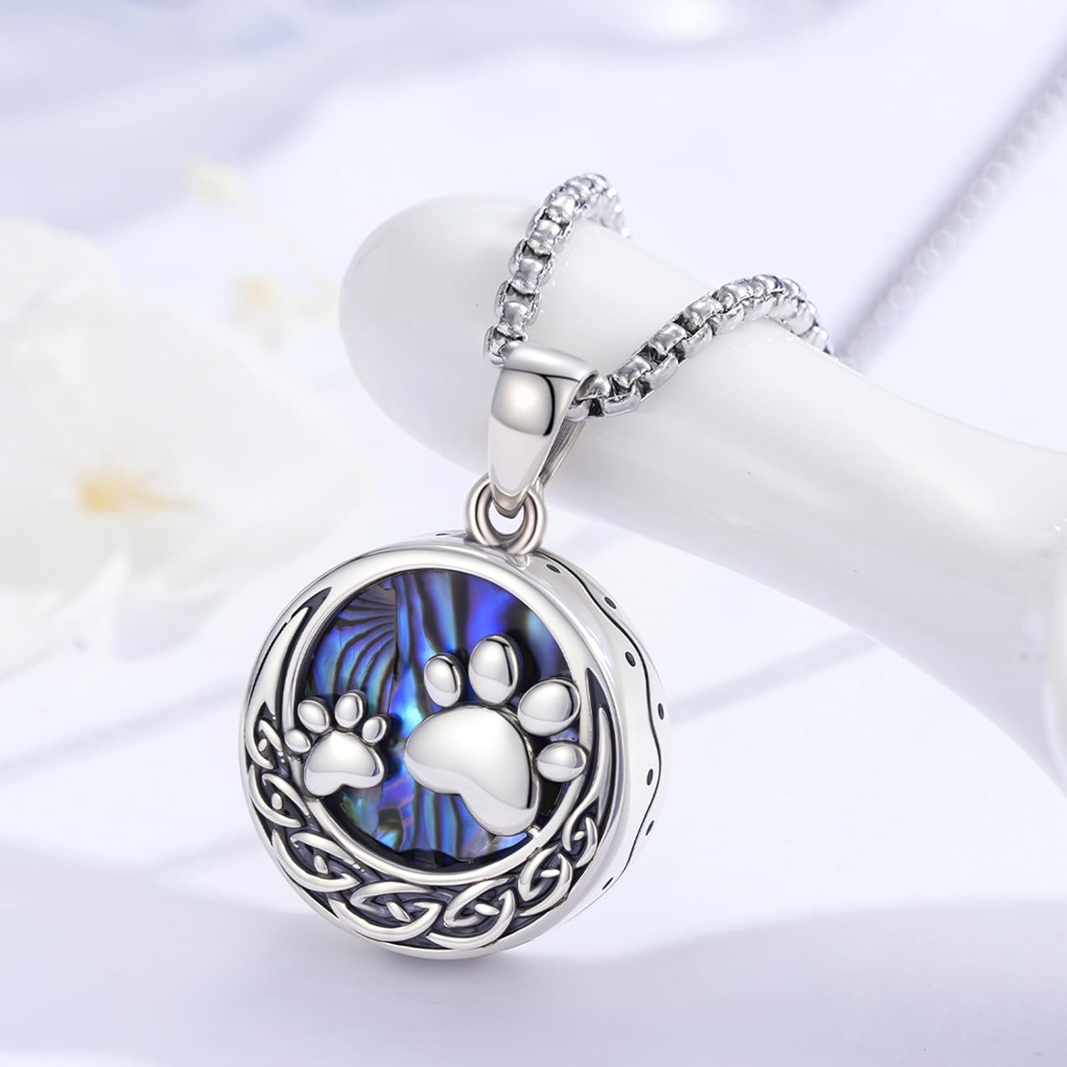 MEDWISE Celtic Urn Necklace for Ashes 925 Sterling Silver Paw Prints Necklace Abalone Shell Ashes Keepsake Memorial Urn Pendant Pet Cremation Jewelry for Ashes Memorial Jewelry for Dog Cat Pet